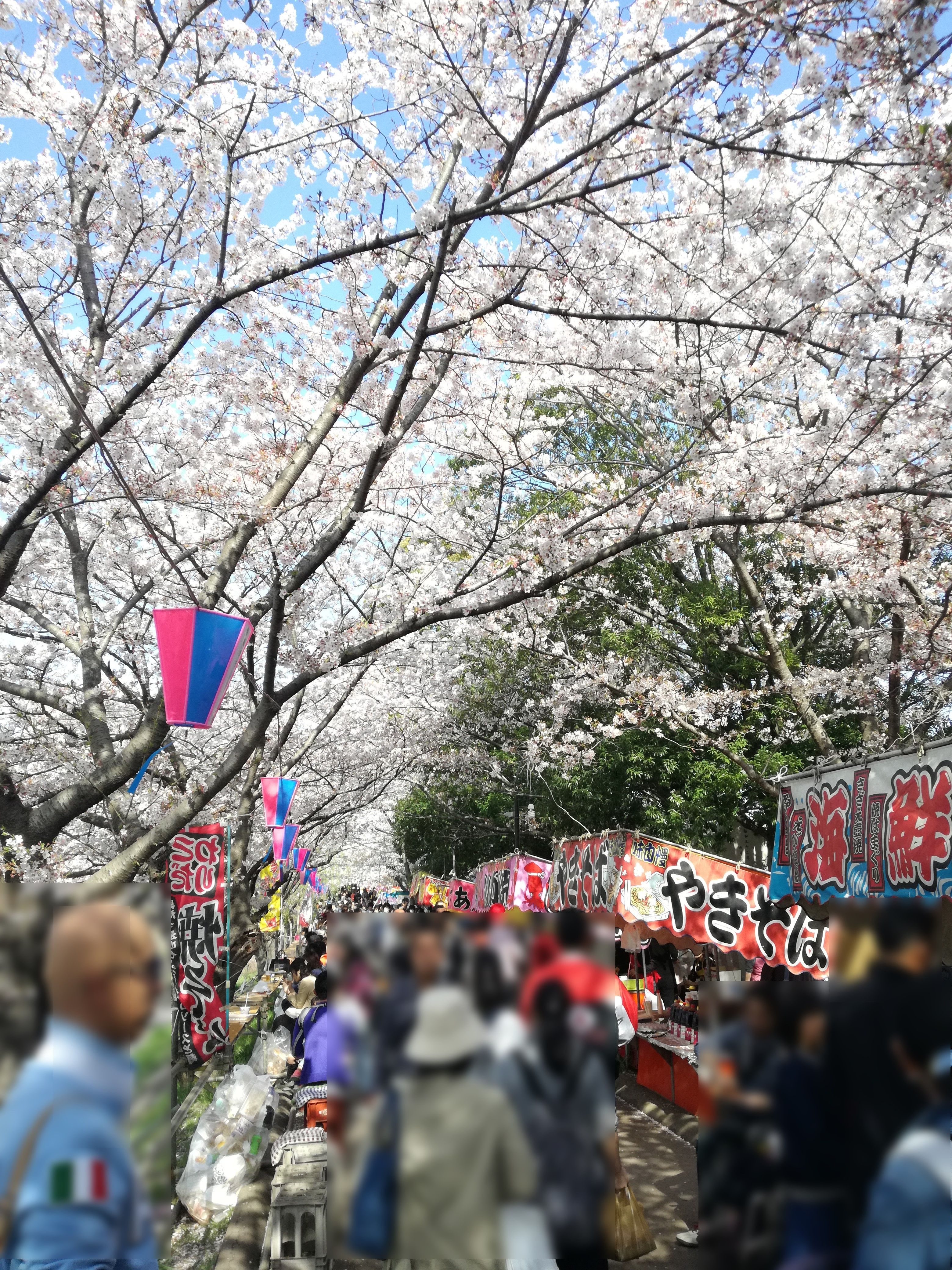 桜のトンネルを歩きながら屋台でいっぱいつまみ食いして楽しかった~