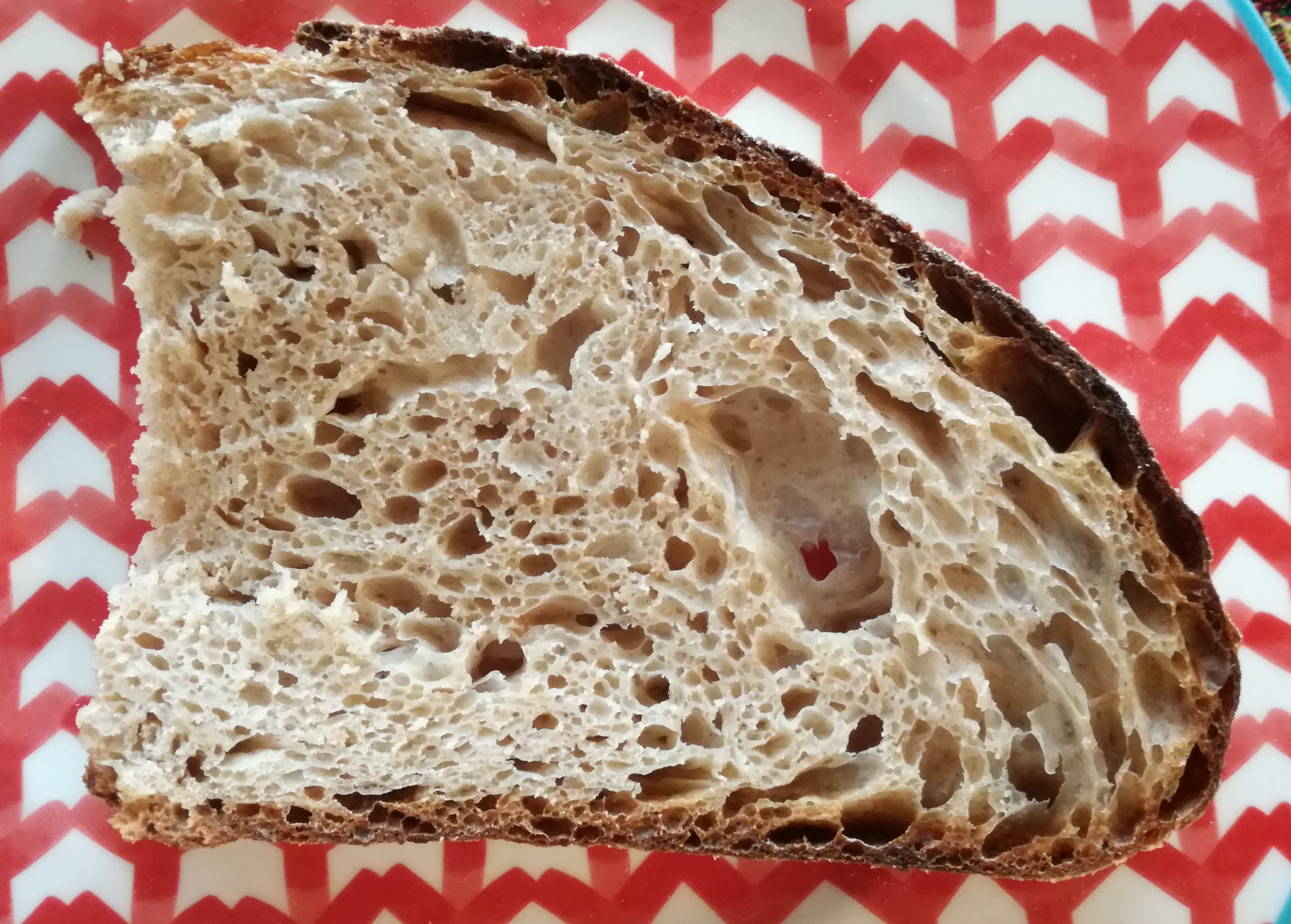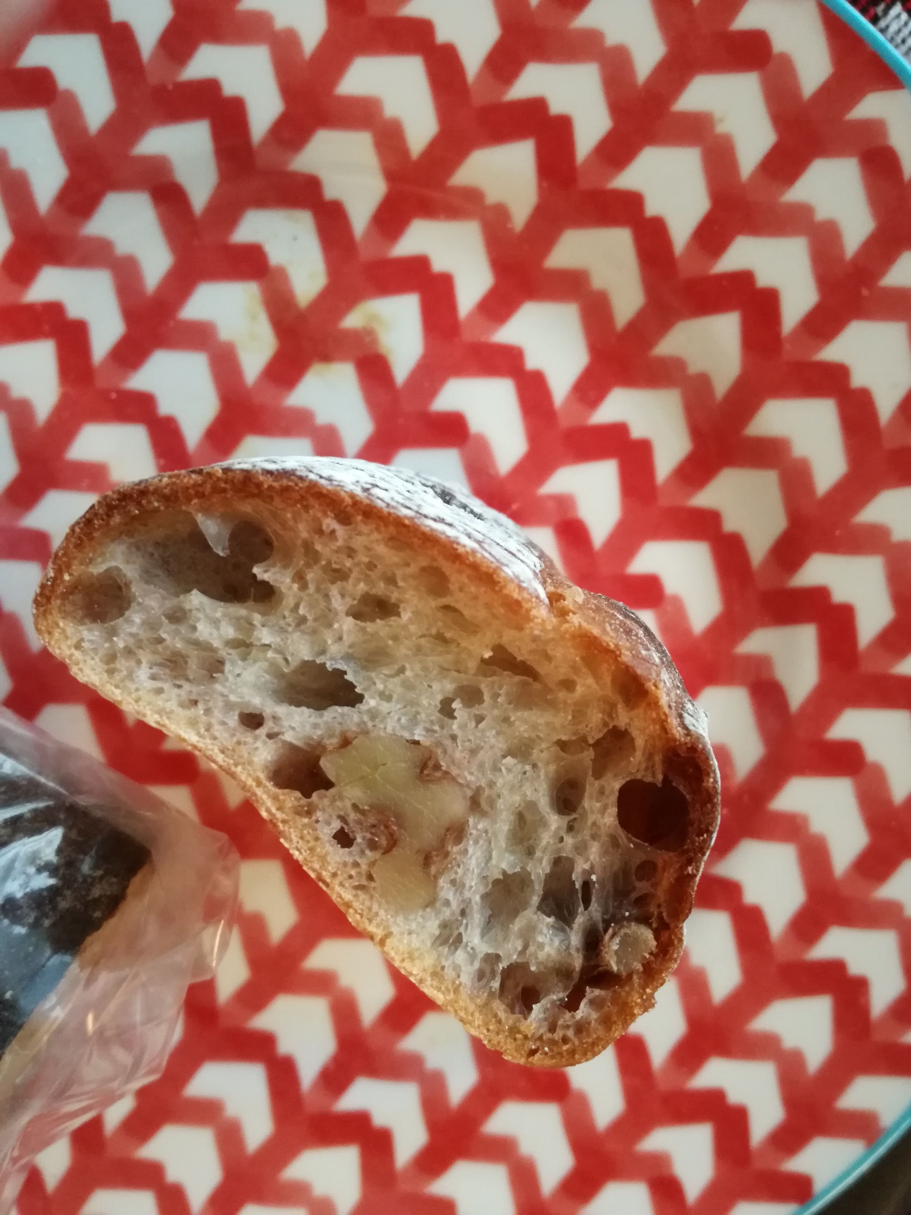 いつものびっくりするくらいの高加水の生地ではないけれど、小麦の味のする美味しいハード生地。