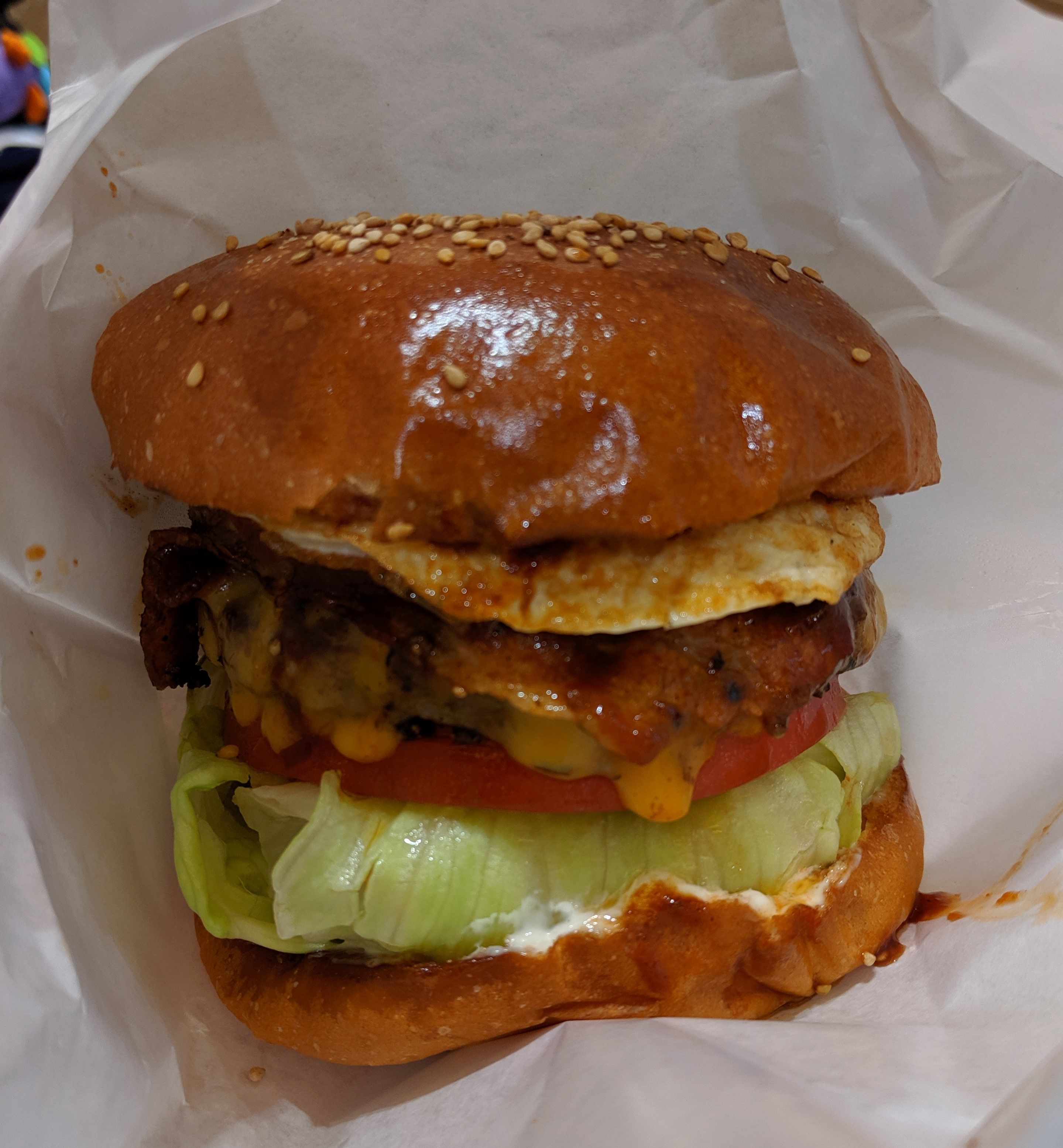 肉汁溢れるパテが美味しいのはもちろん、ベーコン、目玉焼き、トマト、玉ねぎ、パイナップル、レタスにバーベキューソース、全てが美味しいです。