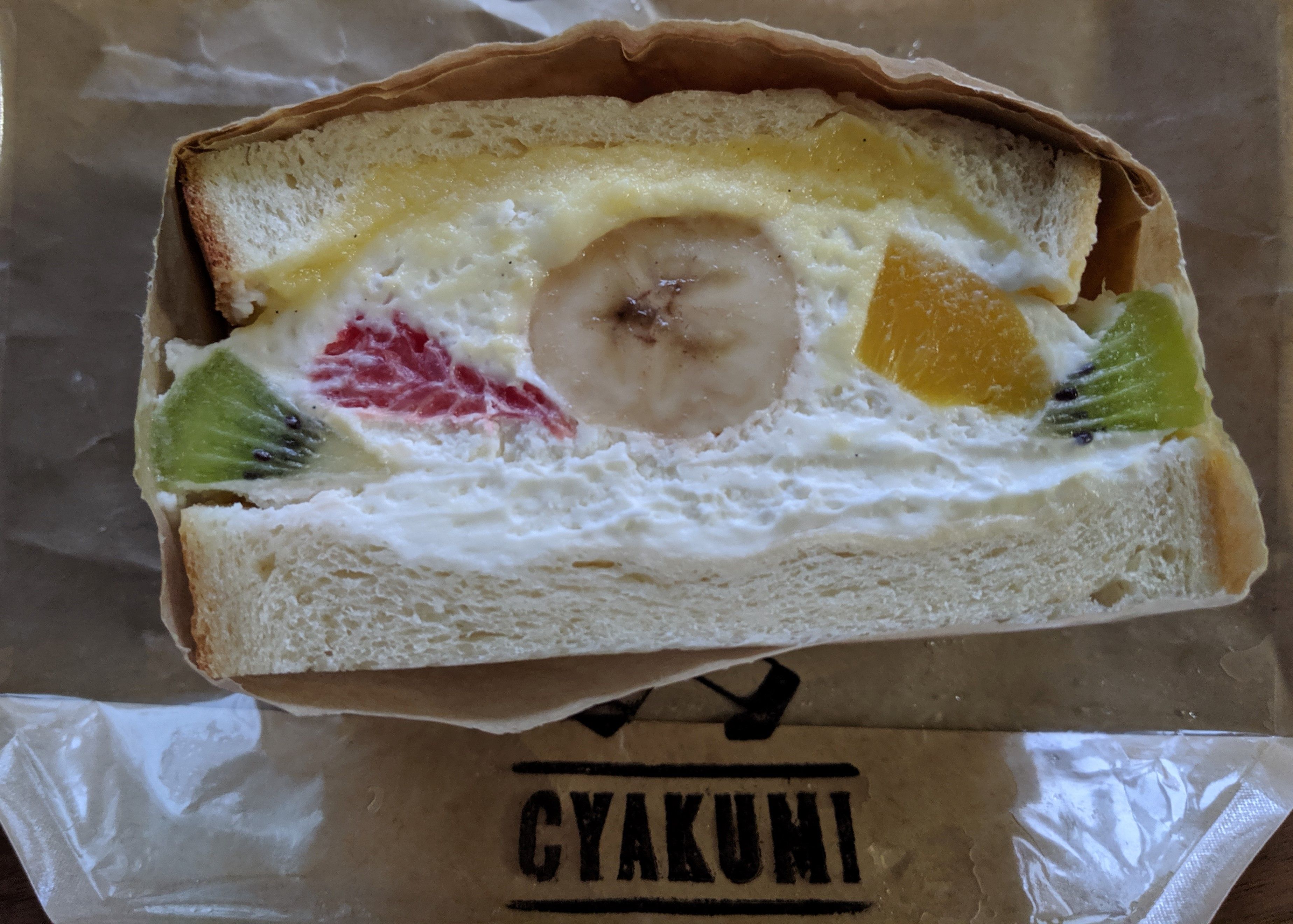 催事だからかちょっと高かったけど、フルーツサンドって手間暇かかるぜいたく品のイメージだからしょうがないね