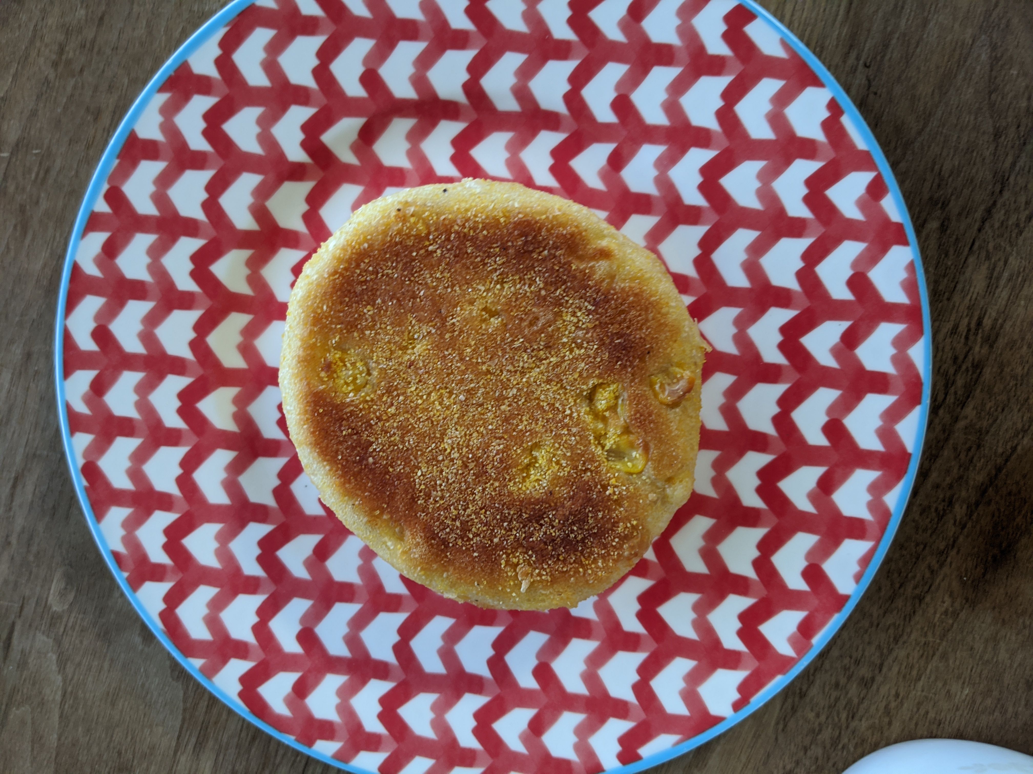 中にもコーングリッツとコーンの粒が一杯入っていて、もっちりしつつちょっとプチプチっとした詰まった生地。
