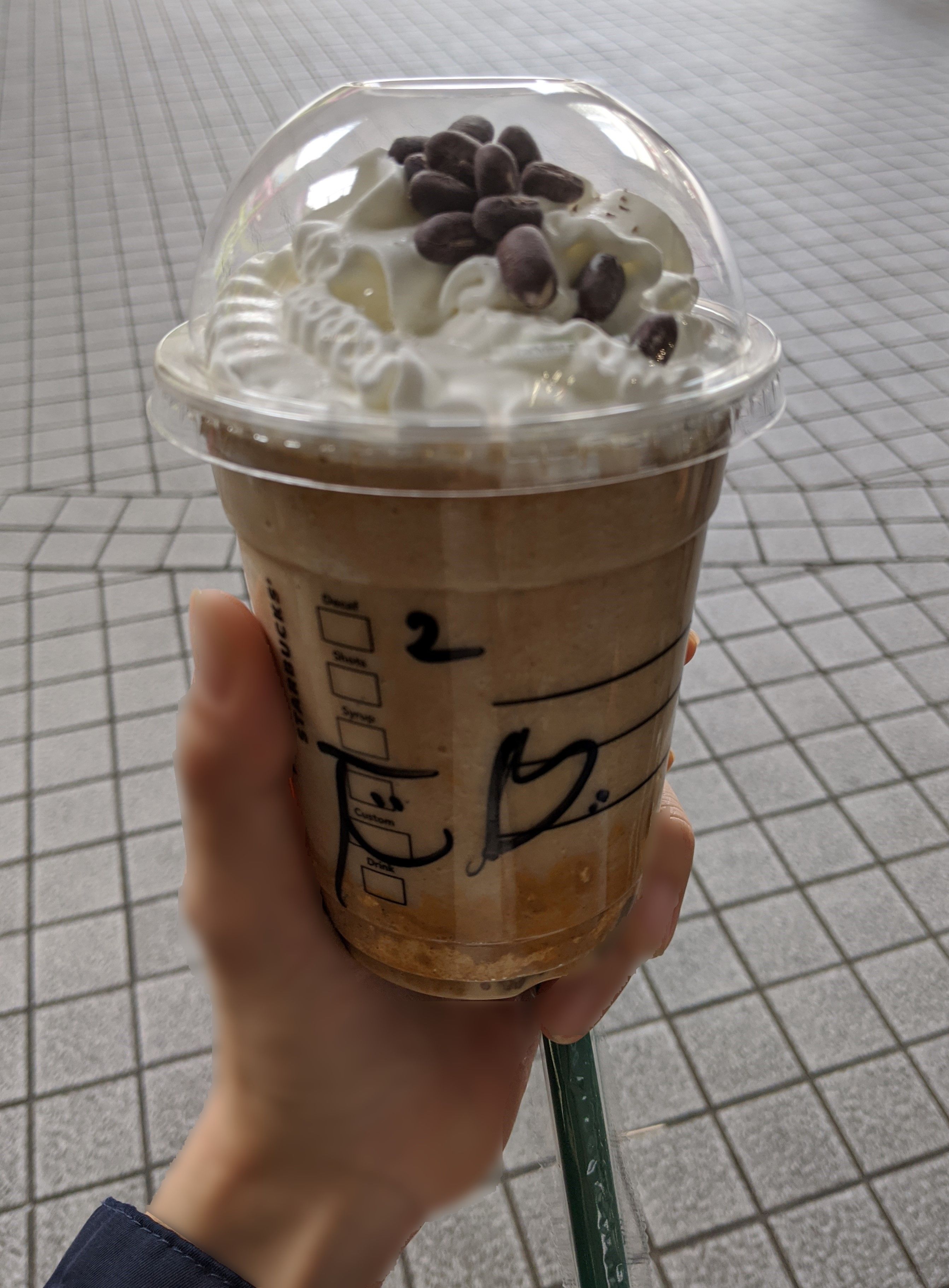 わらび餅入ったフラペチーノだ(今日くらい節約しなくていいや)