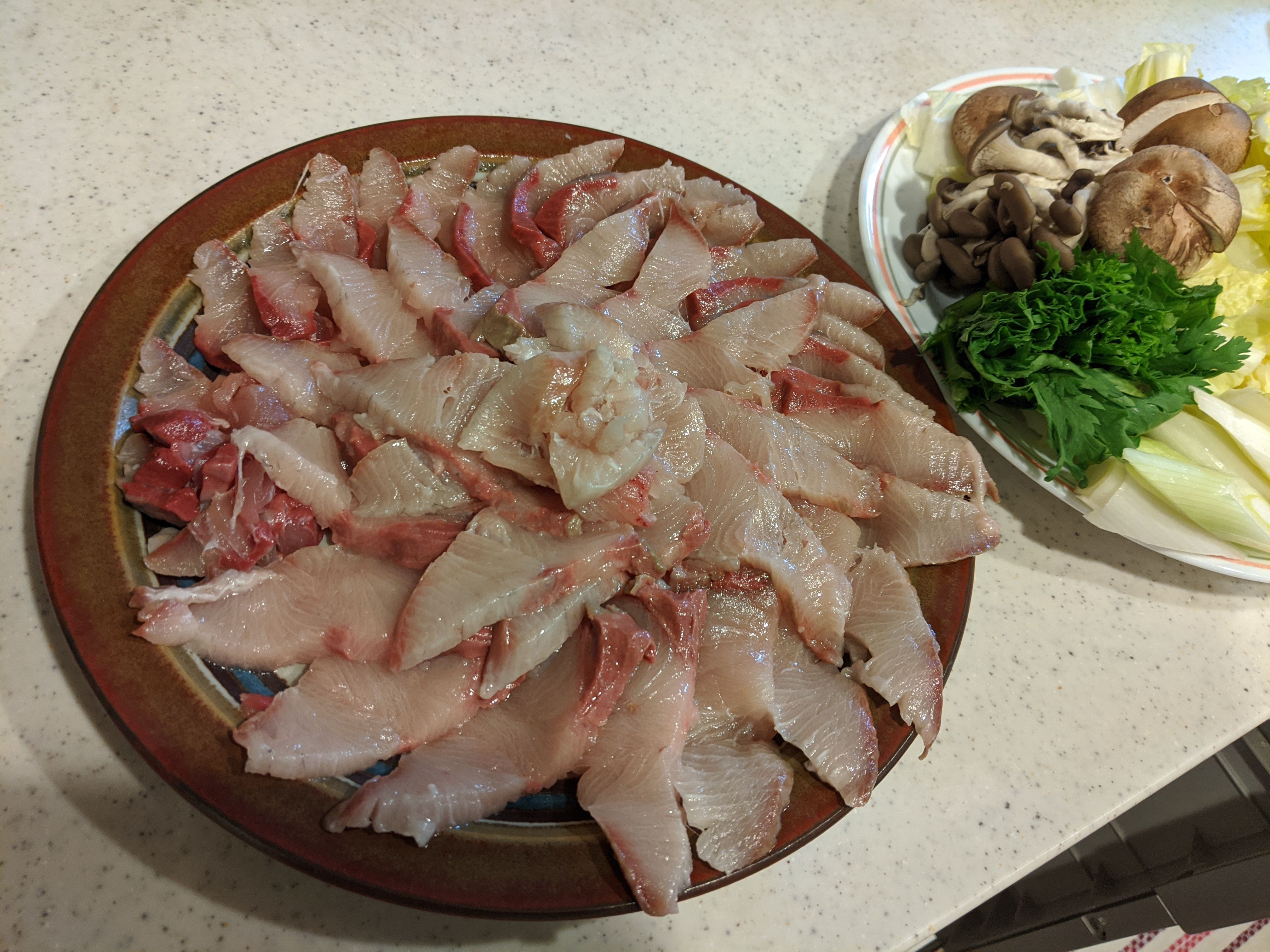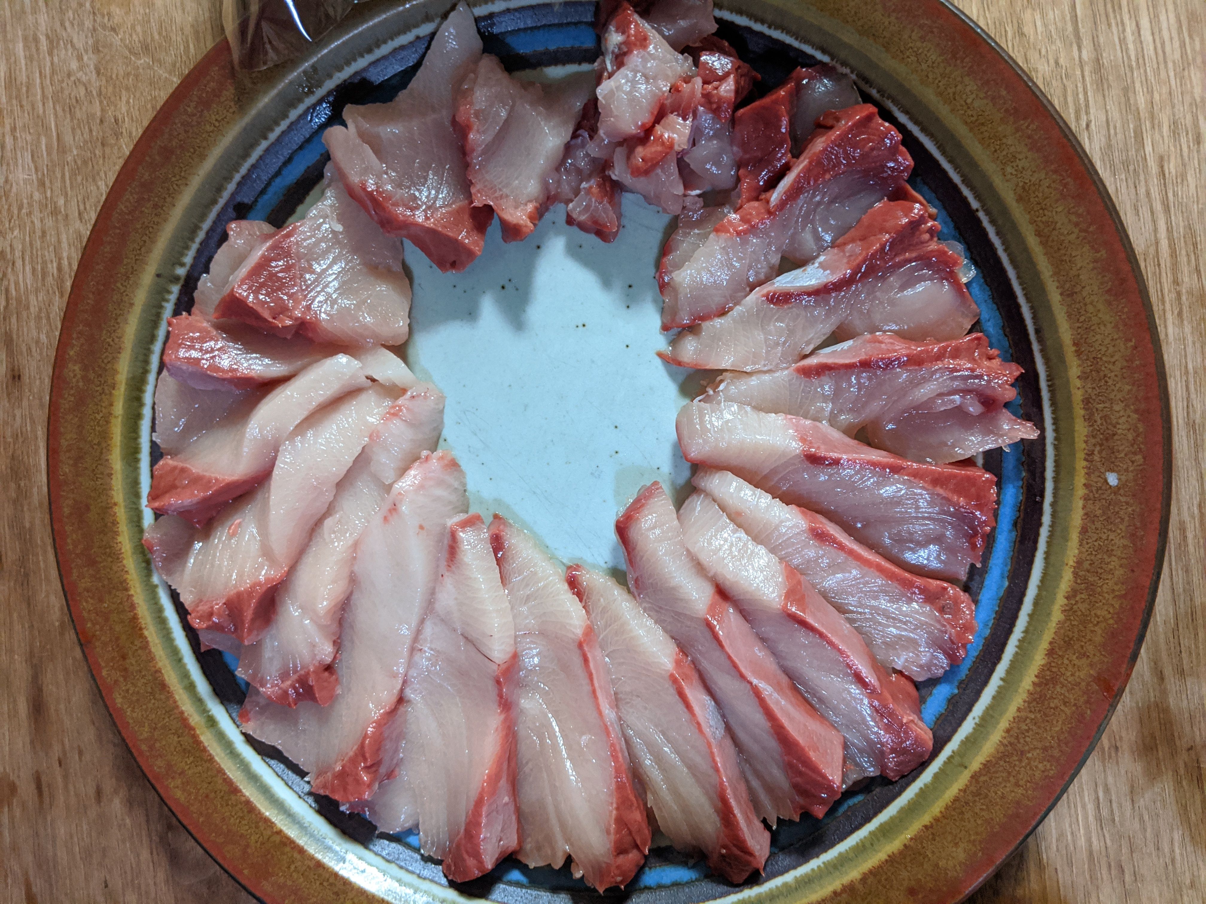 YouTubeで動画を見ながら一生懸命捌いて、まずはお刺身で
