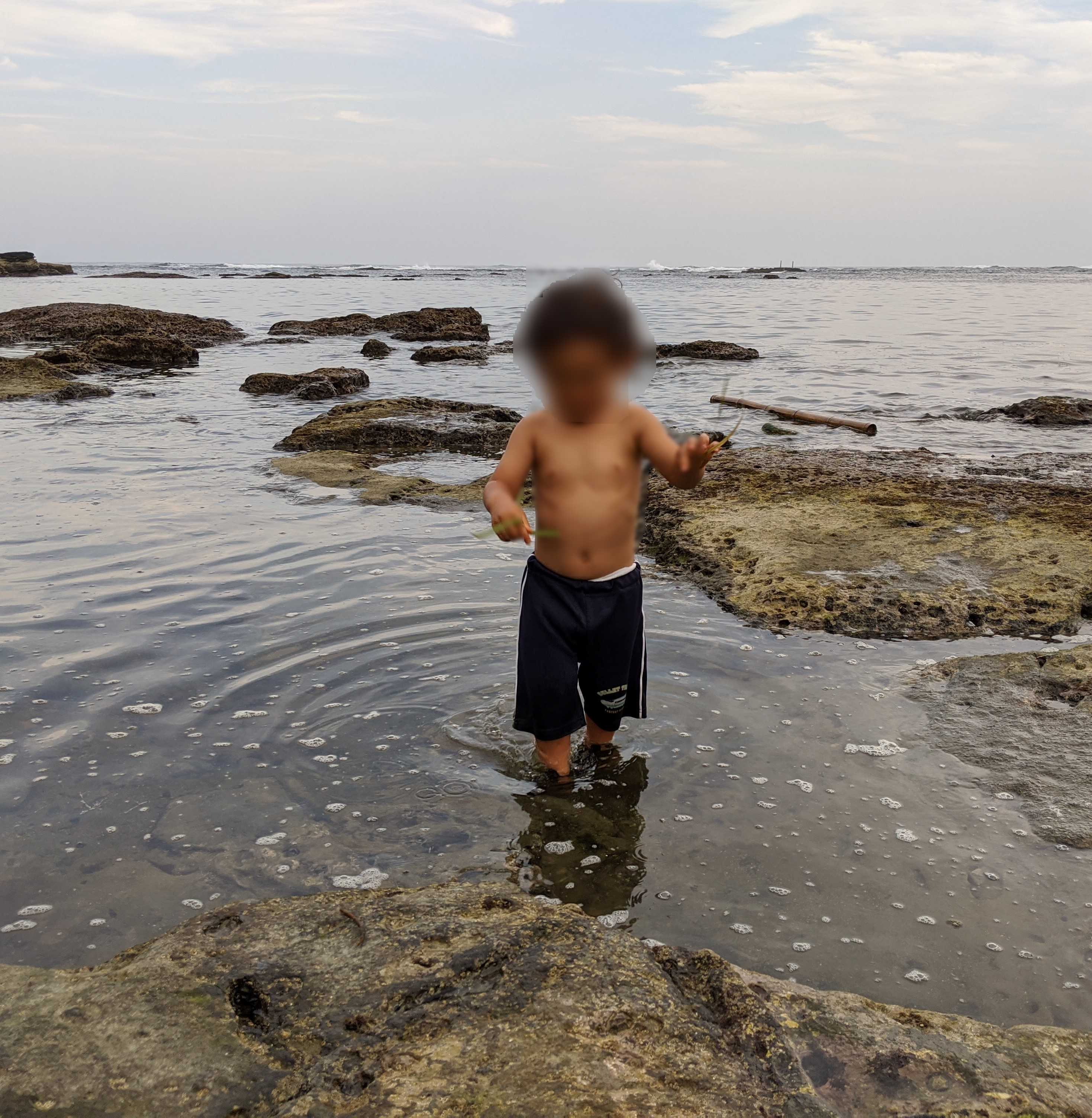 息子はずんずんと歩いて行って洋服のまま海に(笑)