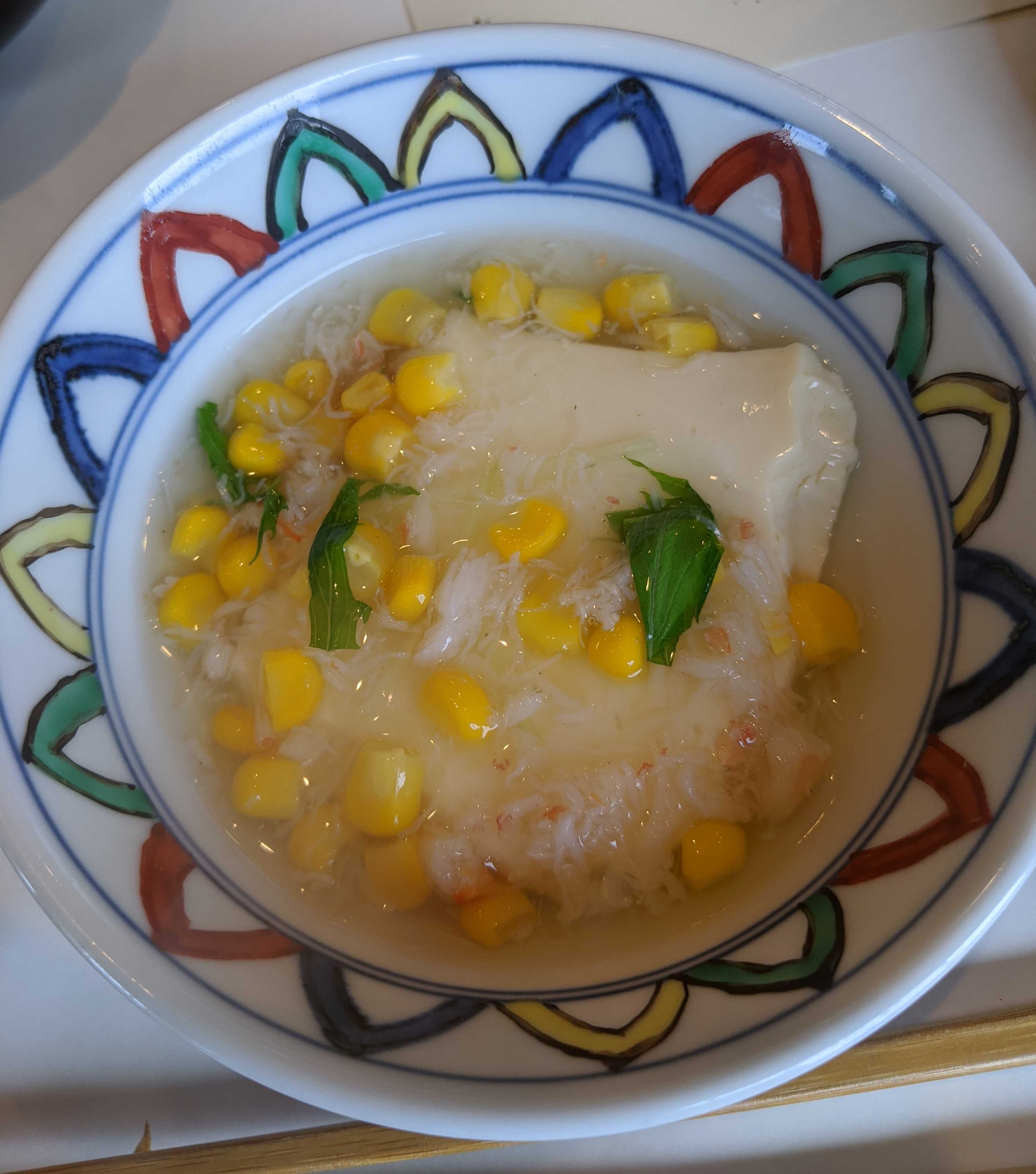 カニとコーンがたっぷり入ったとろとろの餡かけに柔らかーいお豆腐。