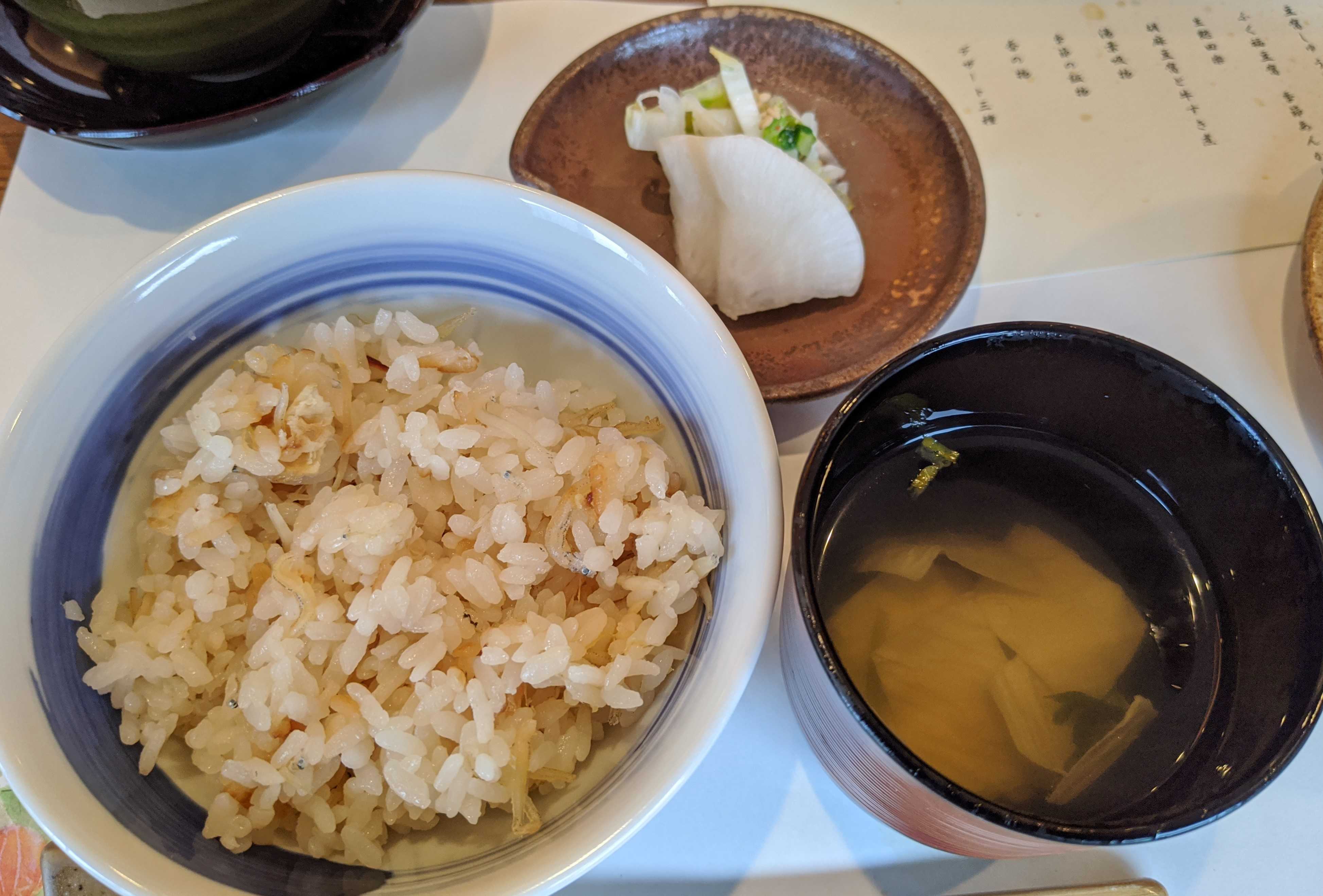 湯葉吸い物、御飯、香の物