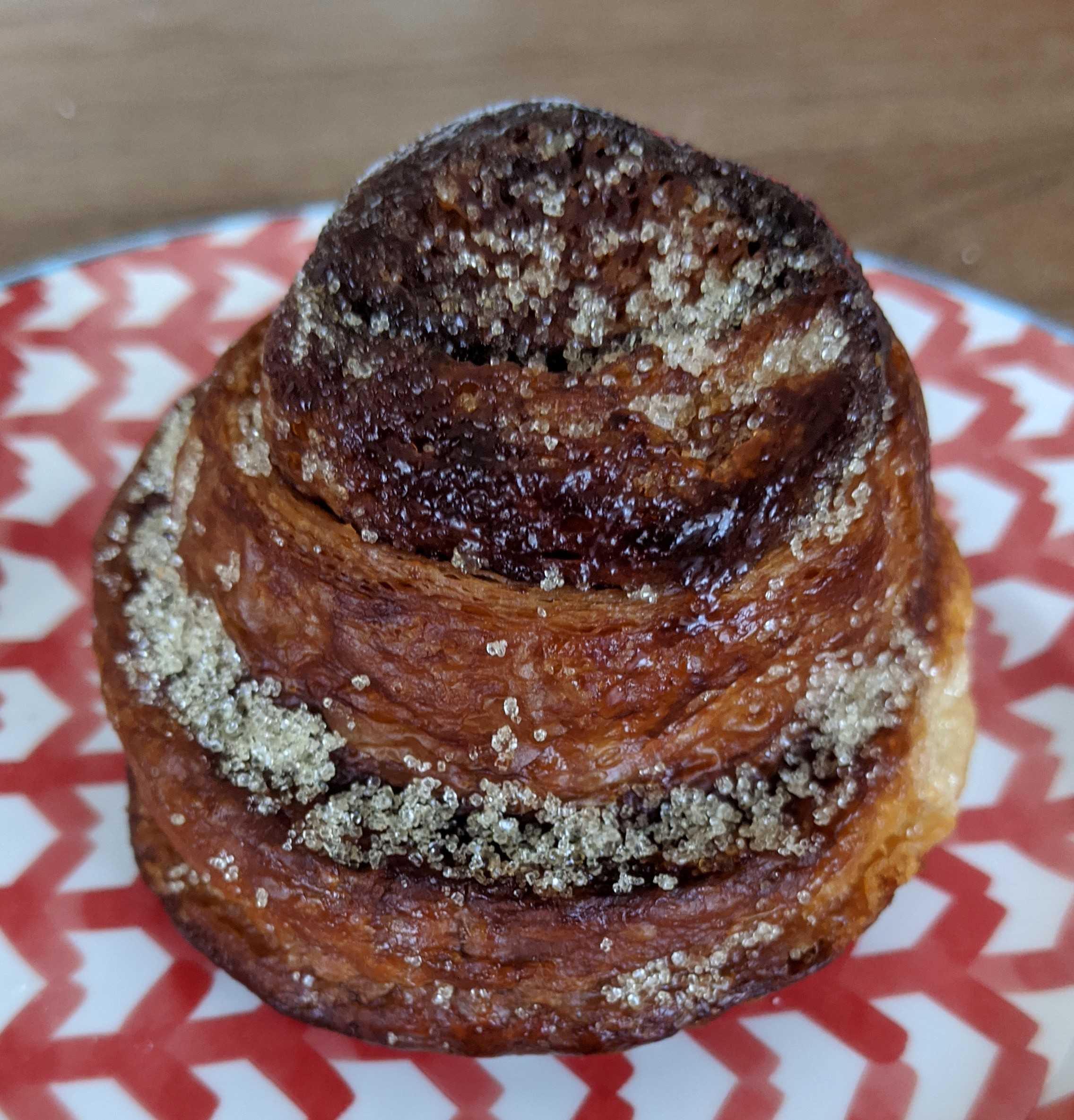 デニッシュ生地でシナモンを巻いて、砂糖をトッピングっていう感じ。