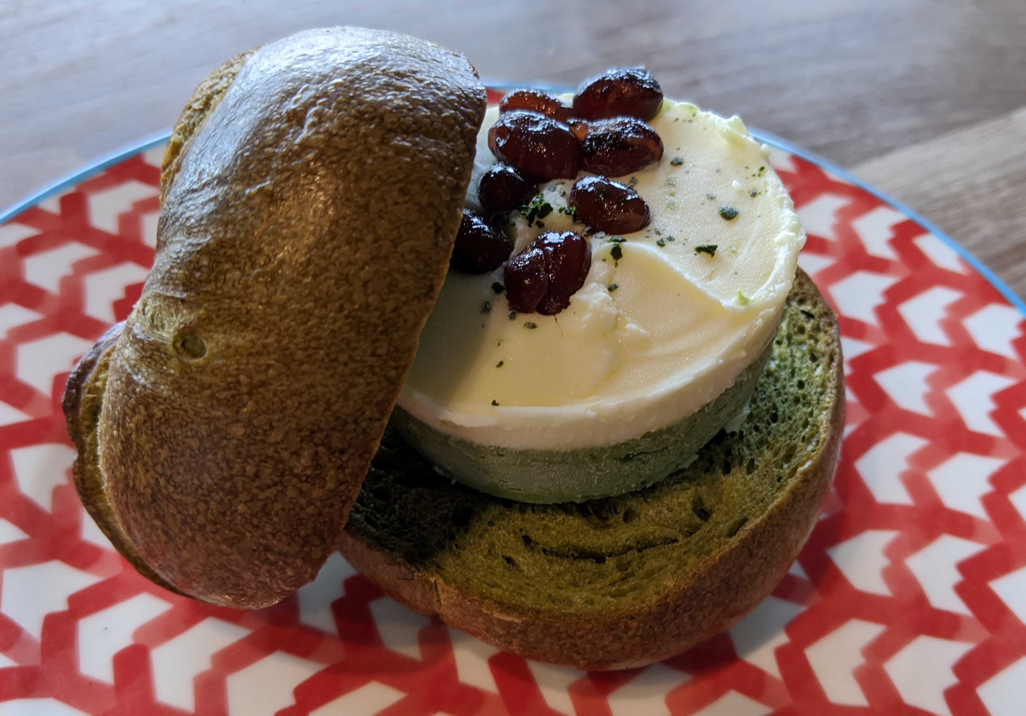 ベーグル:自然解凍→霧吹きトーストで、フィリングは30分くらい冷蔵庫に置いてから挟んでいただきました