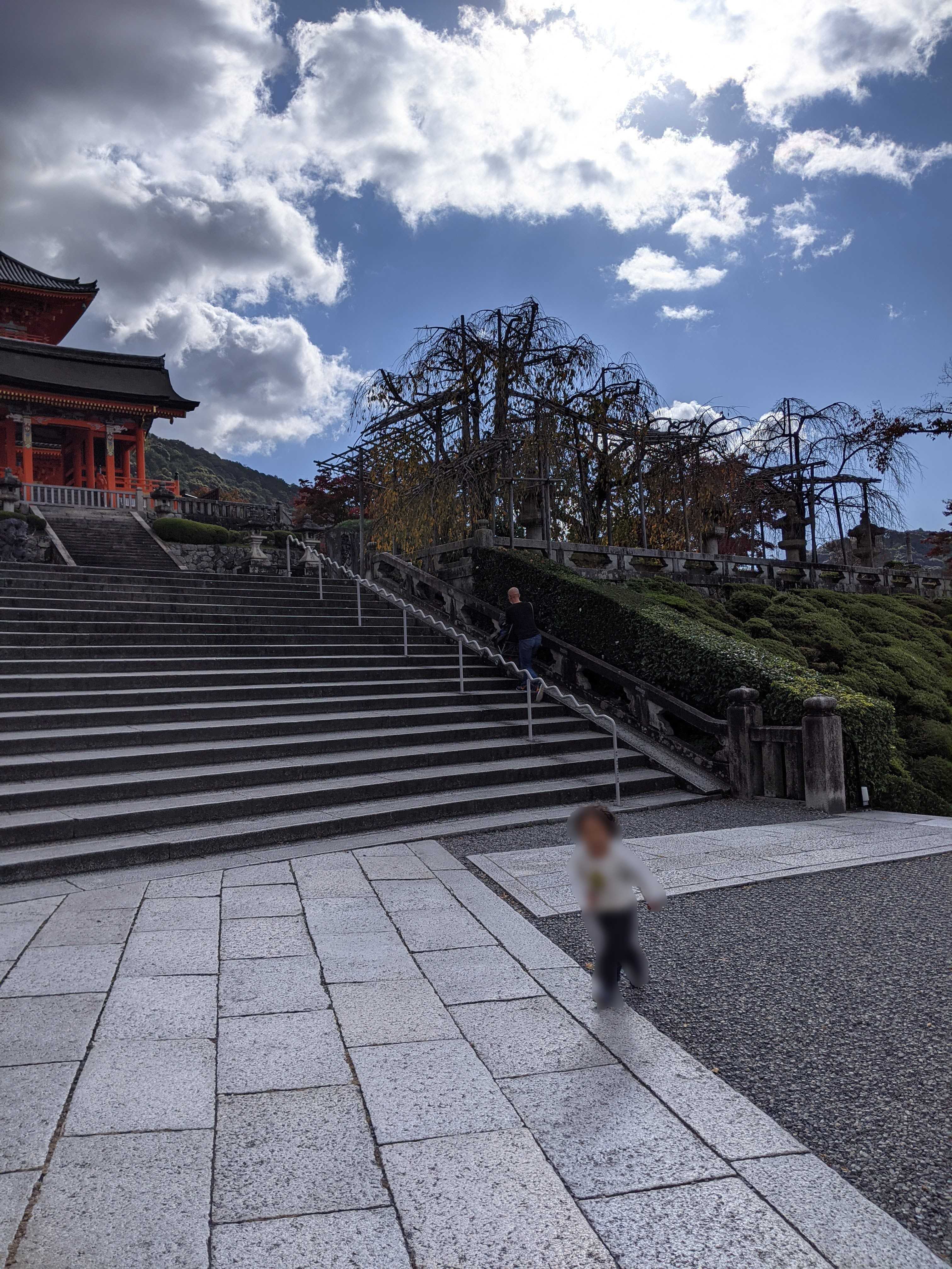 さすがに南禅寺・知恩院に比べれば修学旅行生とかもいて混んでいるけど、やっぱりこんなに空いている清水寺は見たことがないレベル。