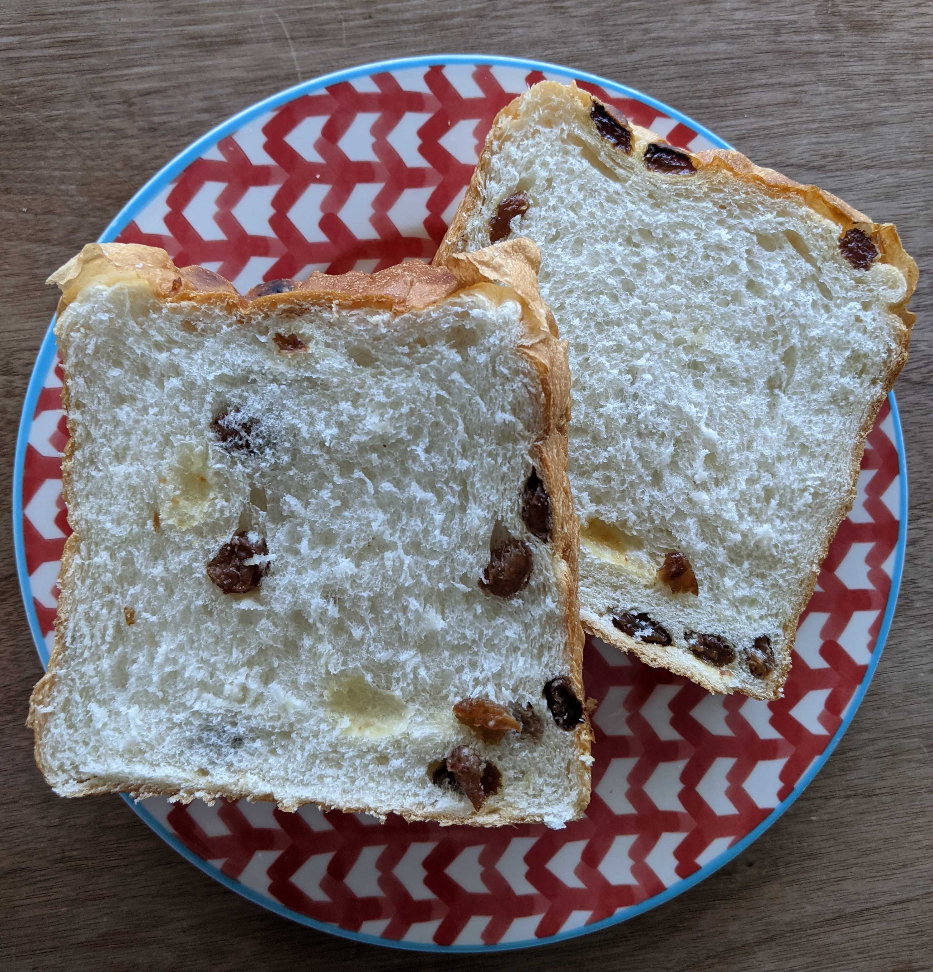 レーズンパン好きの2歳息子は、レーズンをほじくって食べた後、その次に好きなパンの耳を食べて満足していました
