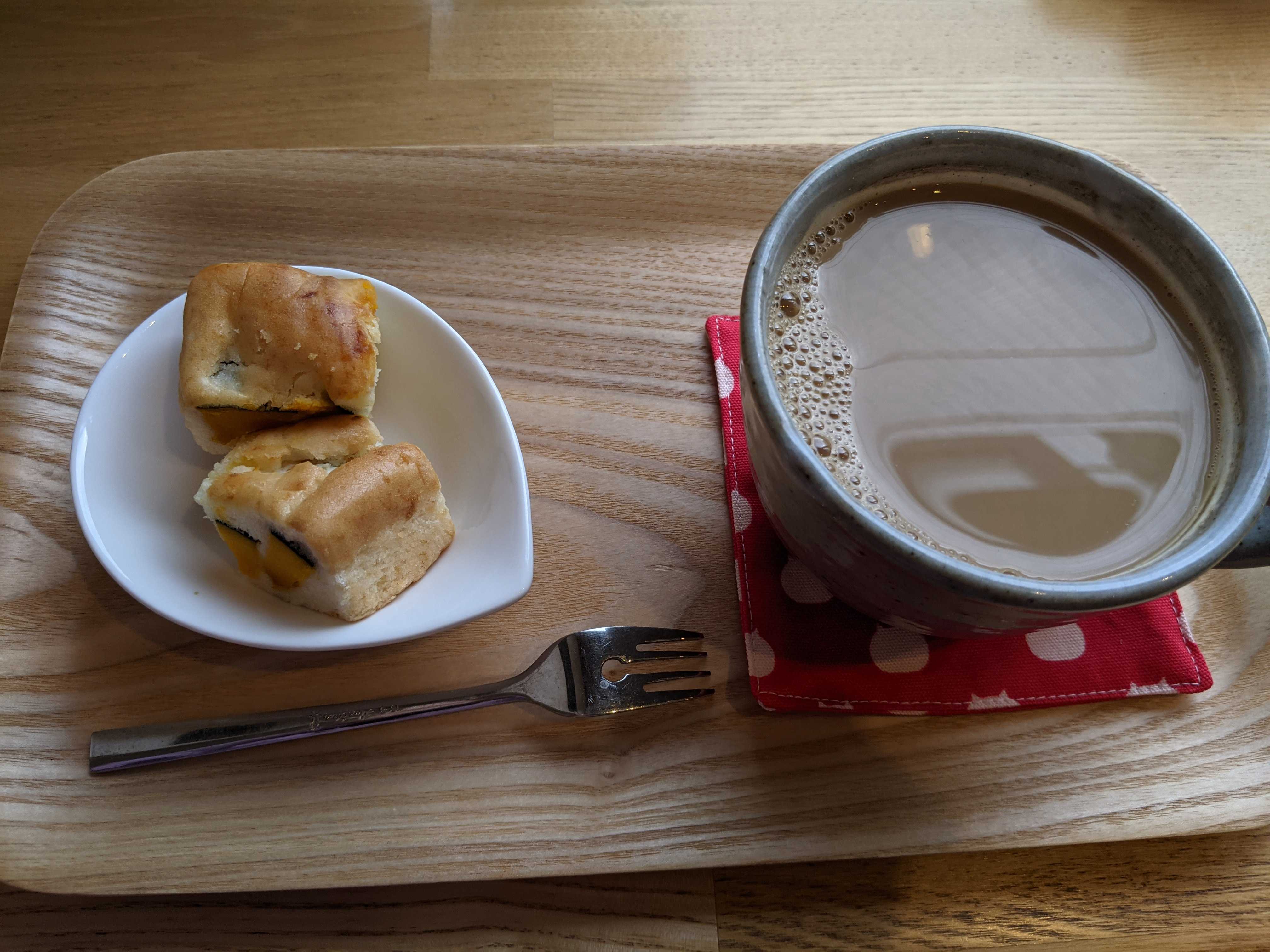 某珈琲店では豆乳で変更だけで50円するのに、この値段でスイーツまで付けられるのはありがたい!!