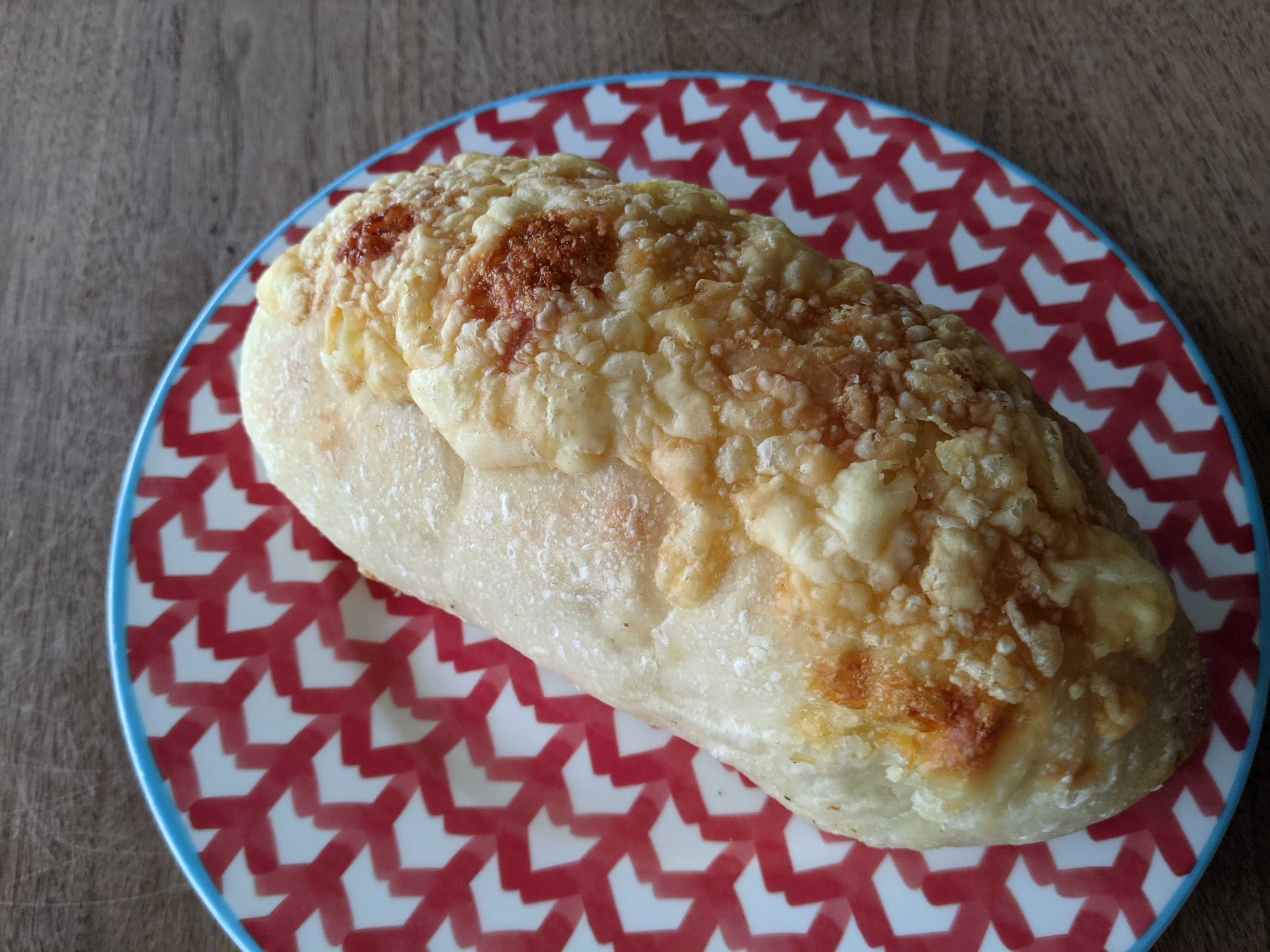 自然解凍→半割りしてチーズを載せてリベイクしてツナキャベツサンドイッチにしていただきました。