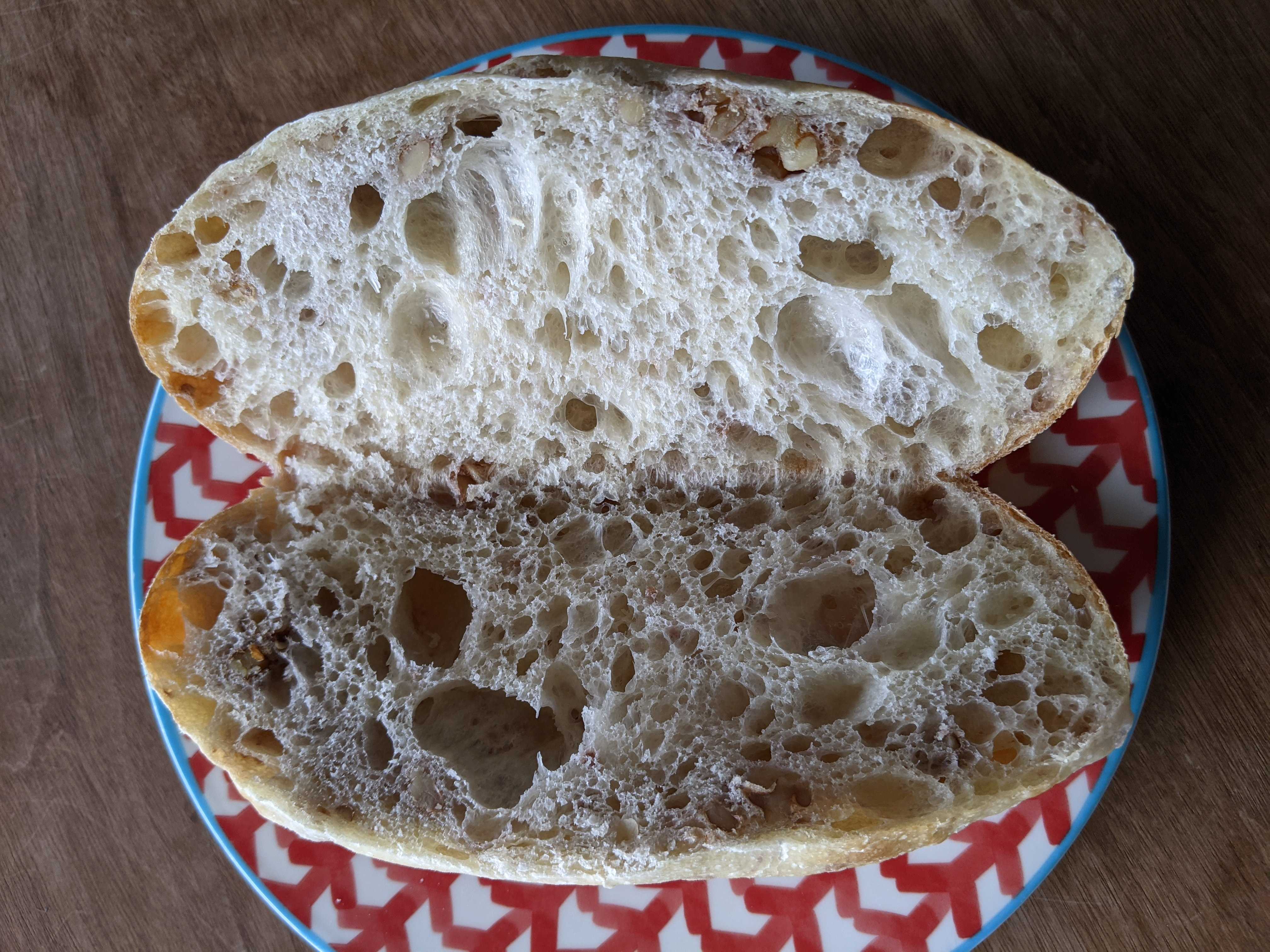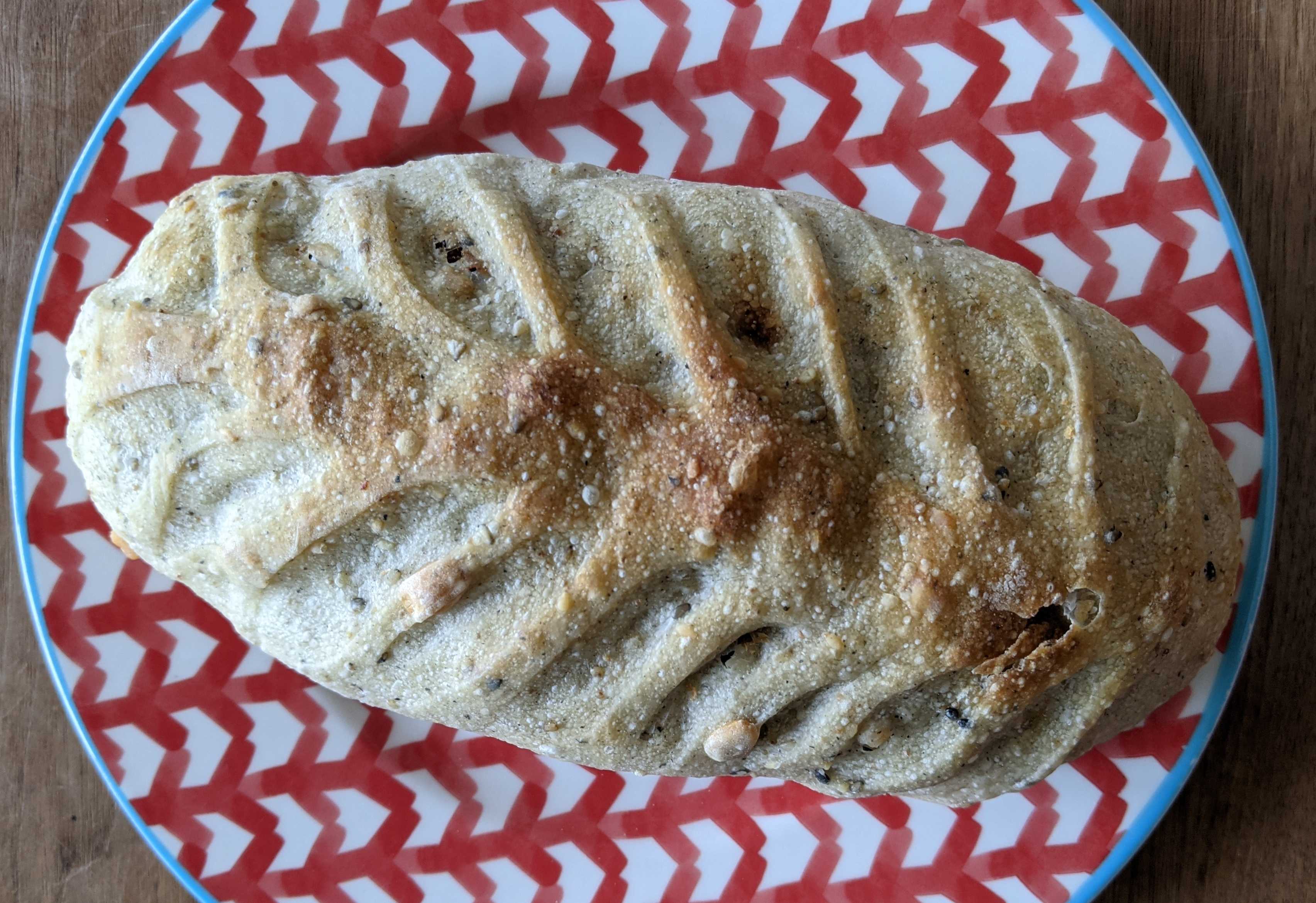 小麦粉、塩、生イーストの基本の生地の原材料に、レーズン、いちぢく、杏、アーモンド、ヘーゼルナッツ、胡麻、ひまわりの種、かぼちゃの種、ポピーシードが具材として書いてありました。