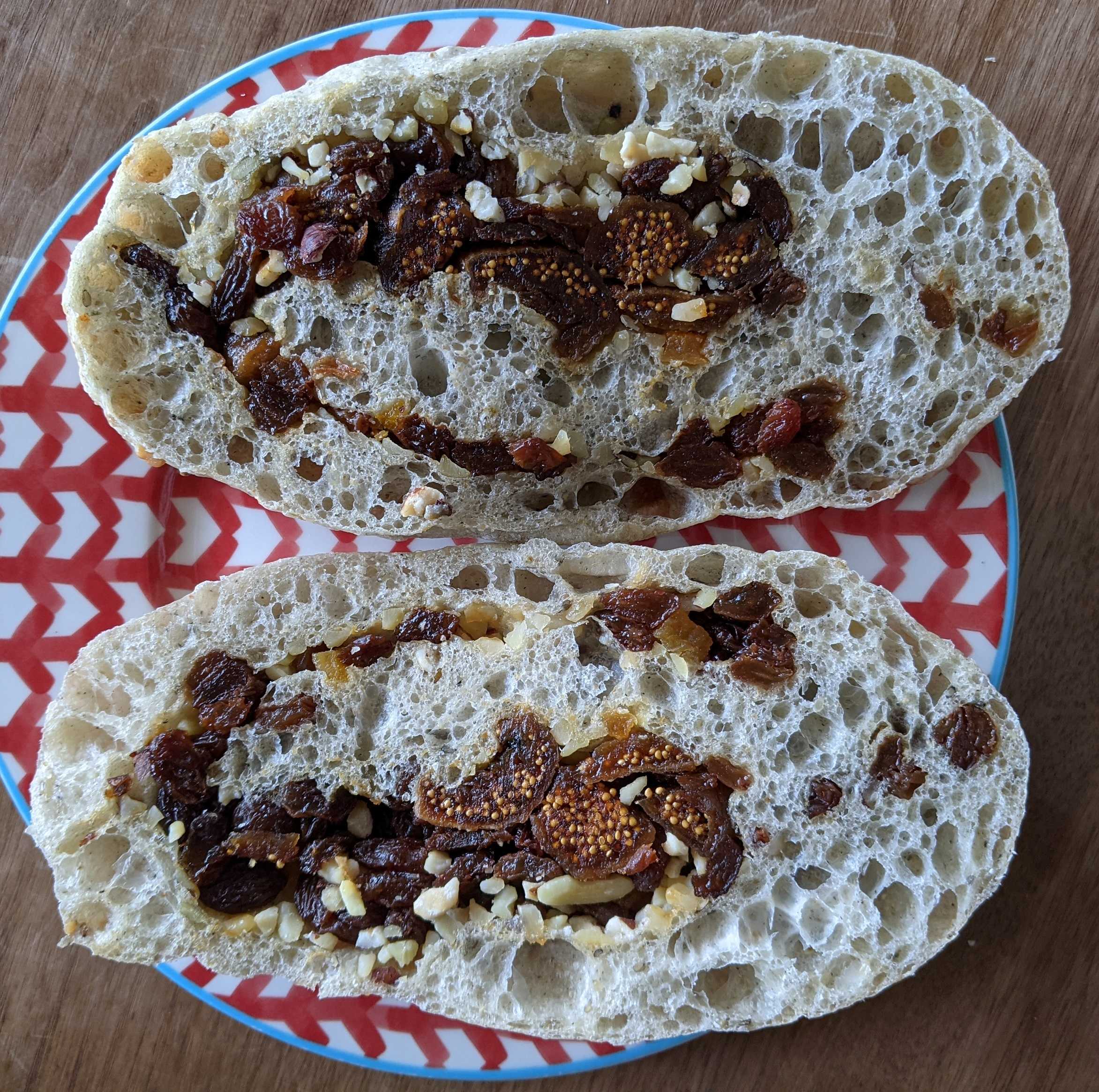 外カリっと、中はふわっとしつつもちっと詰まった生地に、ナッツ類も果物もたっぷり入っていて存在感抜群で美味し