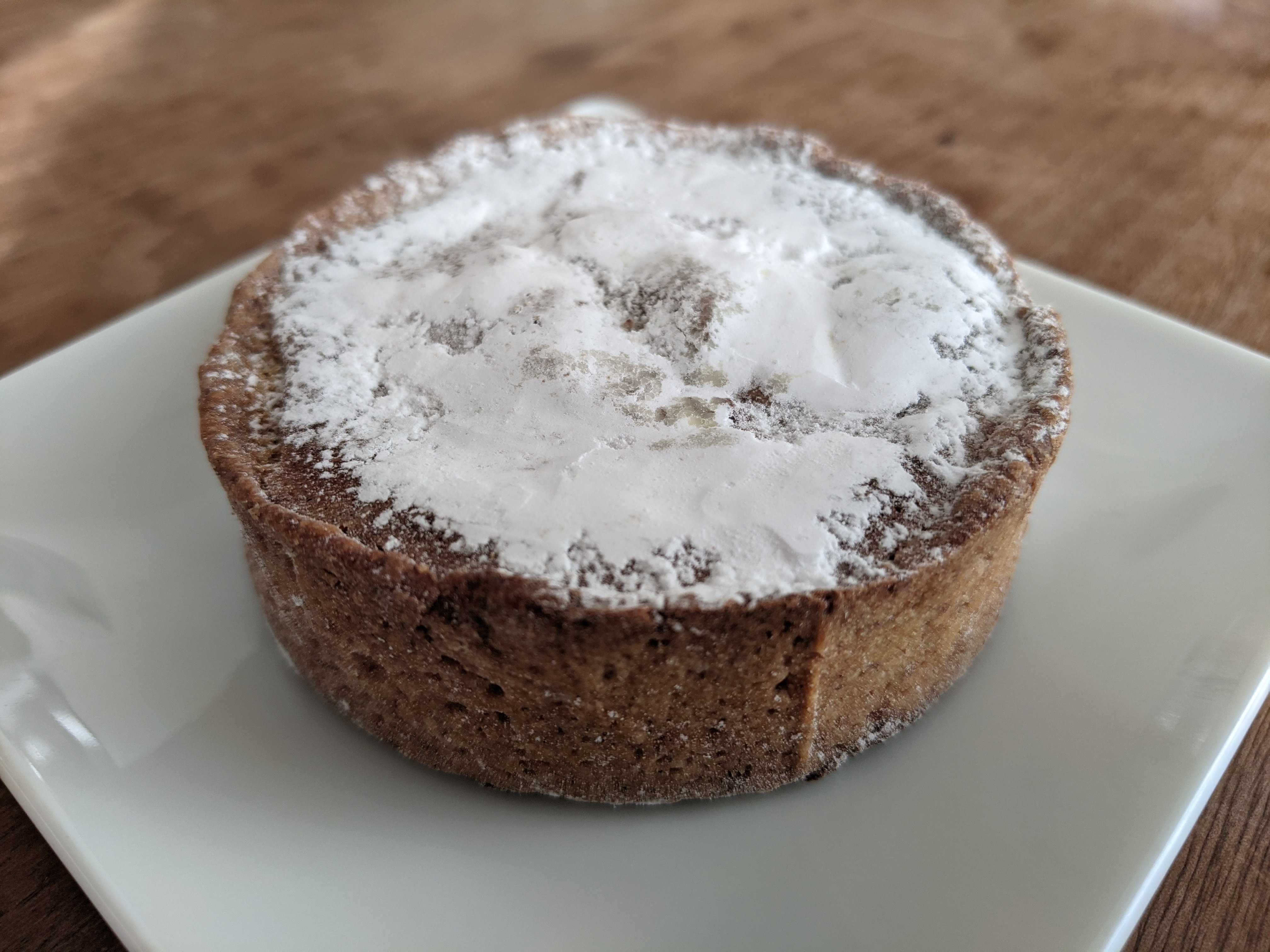 ザクザクと焼きが強めの感じの芳ばしいタルト生地に、しっとりした優しい甘さのアパレイユ。