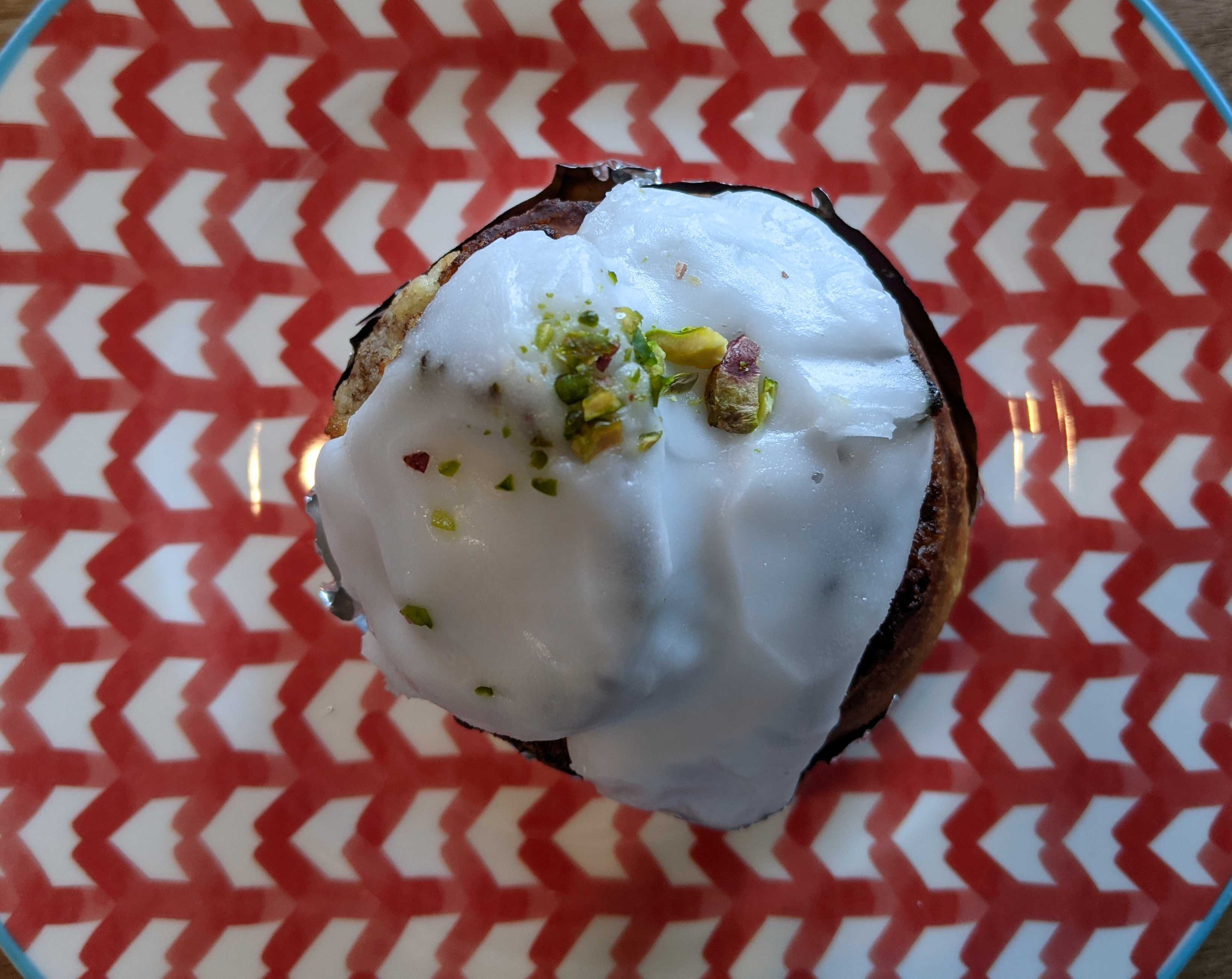 酸味(チーズ+レモンかな)のあるアイシングがかかった、スパイスがしっかり香るふわしっとり生地。