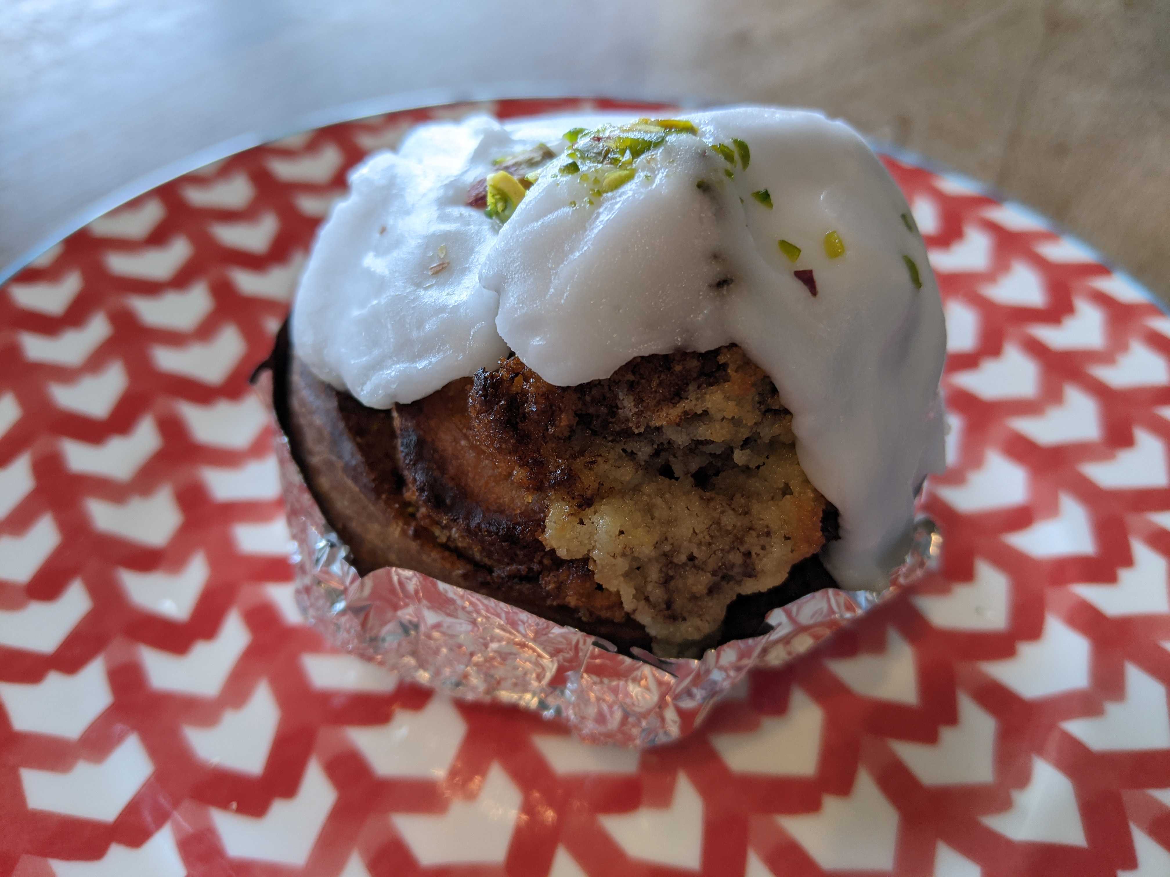 シナモンロールにしてはしっかり焼かれた印象の生地で、シナモンシュガーの風味の中でも小麦の風味を感じます。