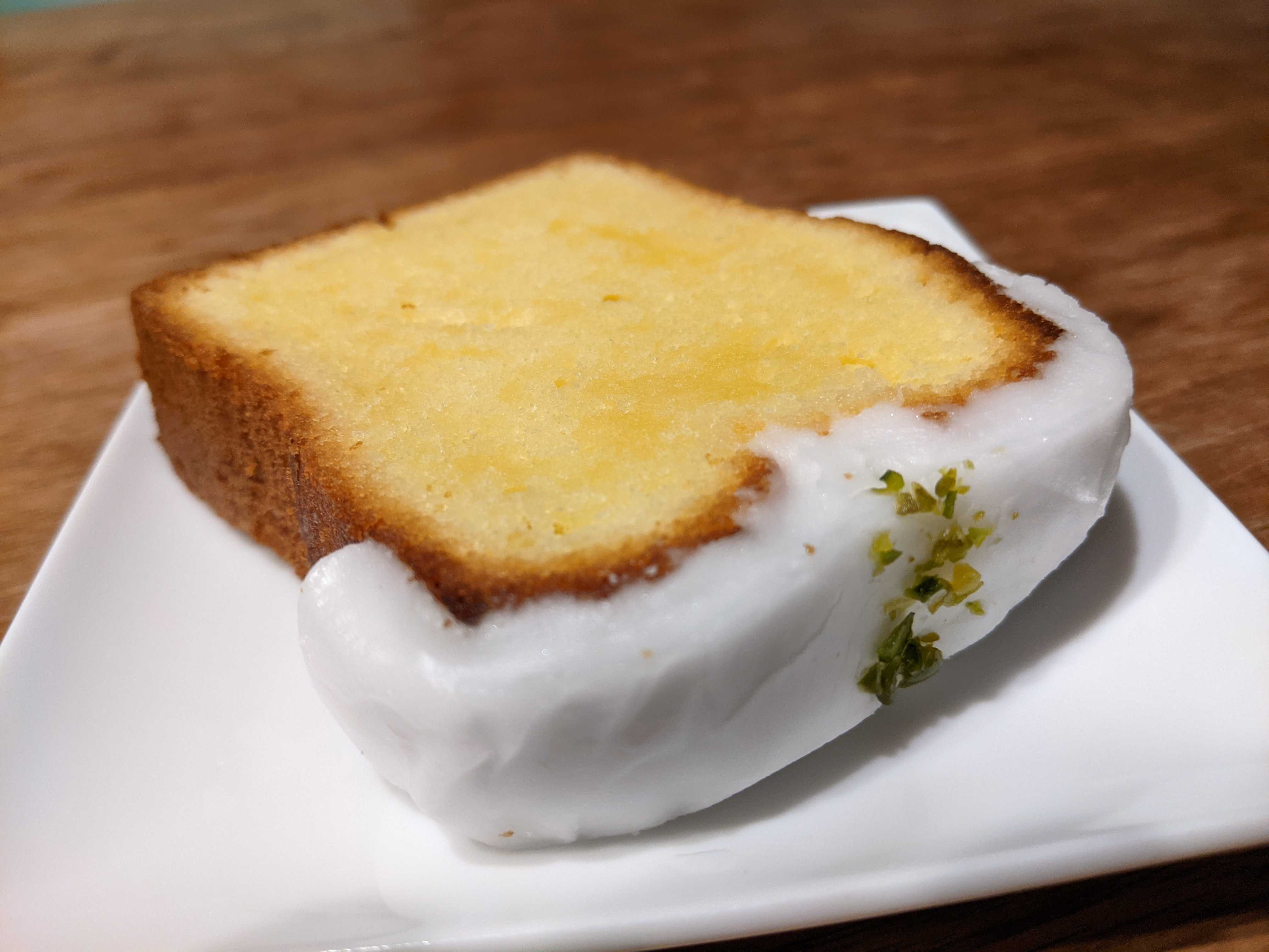 レモンの酸味が効いたアイシングがたっぷりかかった、しっとり生地。