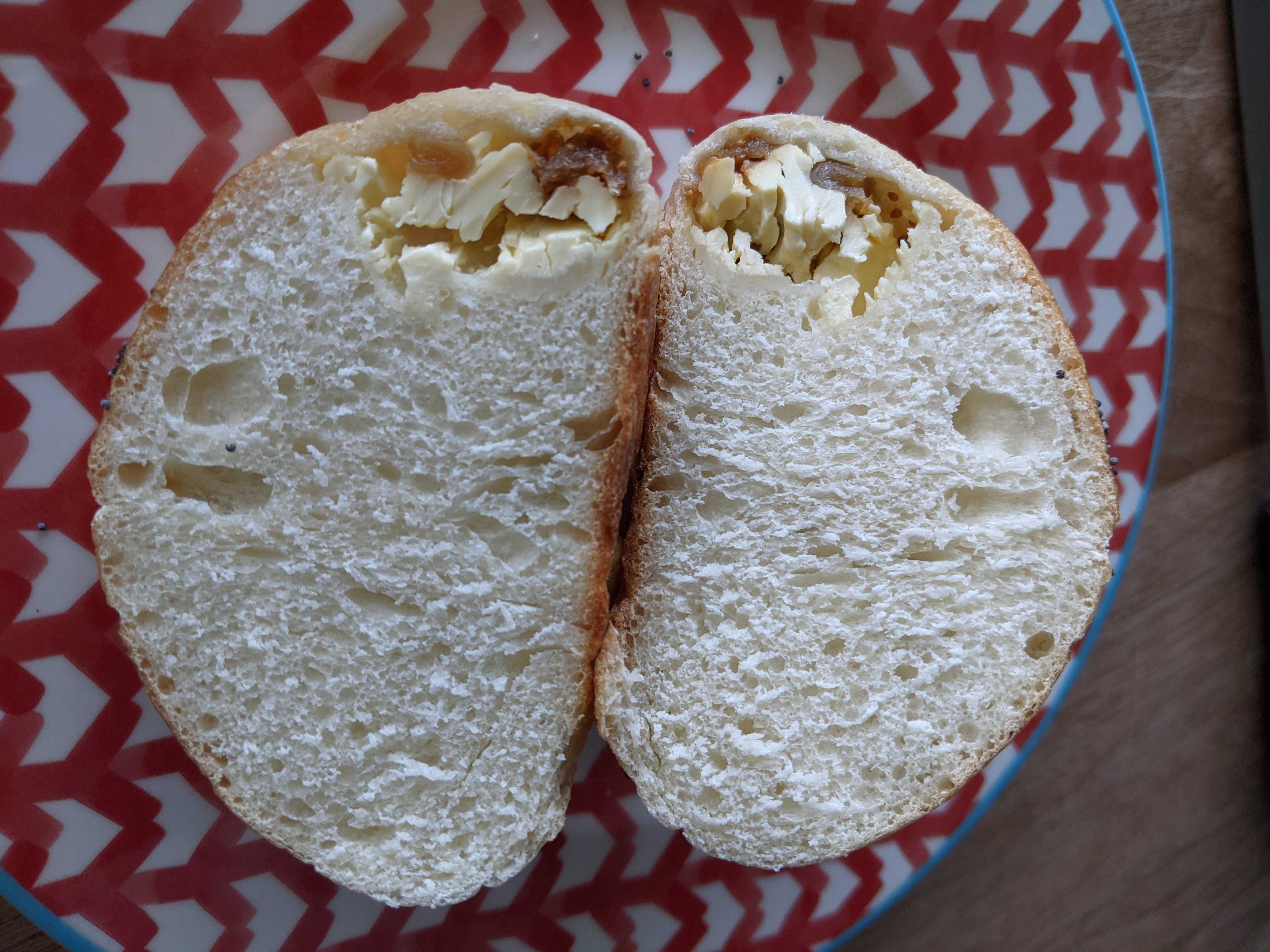 自然解凍→リベイクしてりんごクリームチーズディップを挟んでいただきました。