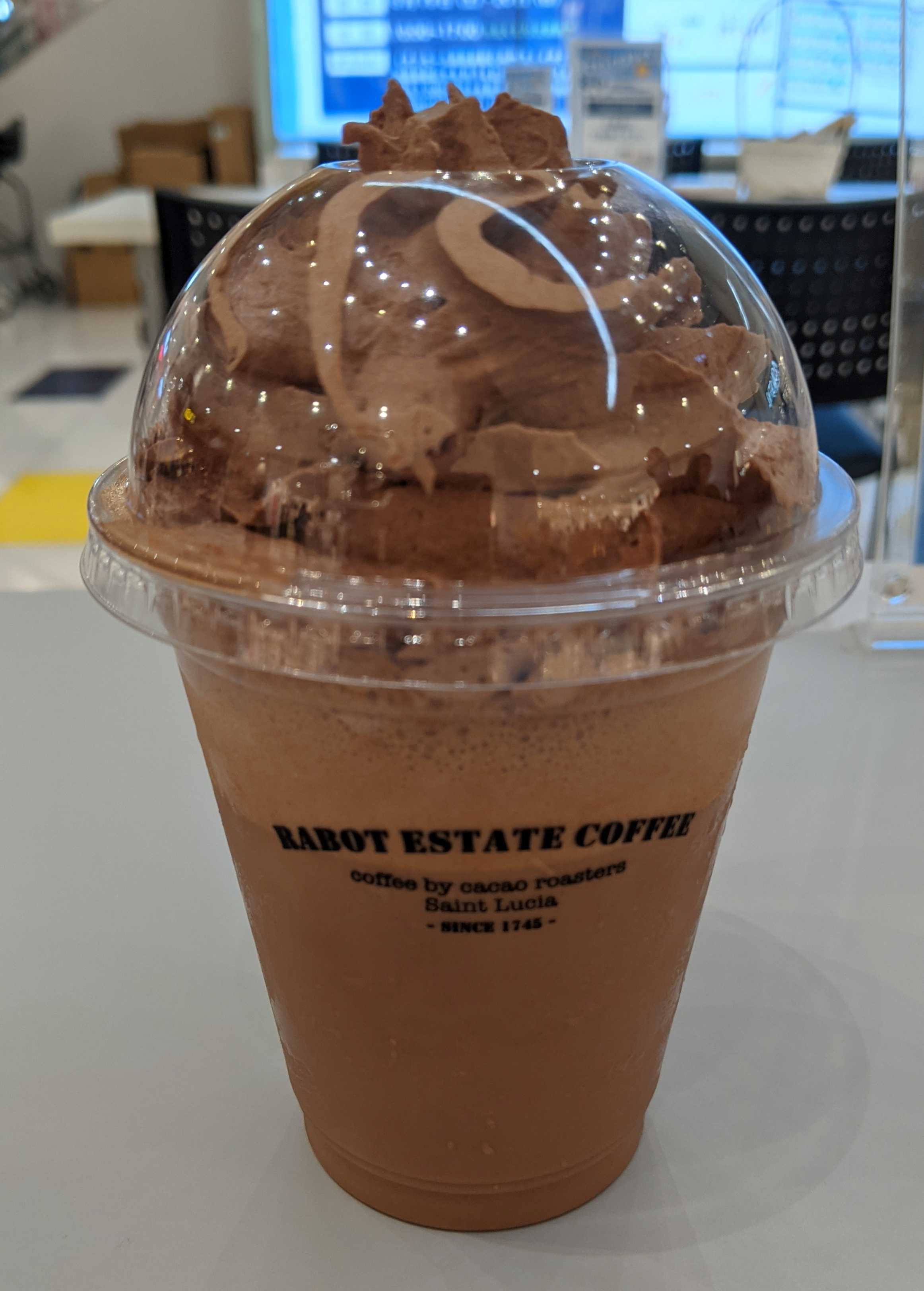 甘さ控えめのチョコレートドリンクにカカオホイップがかかった感じ。