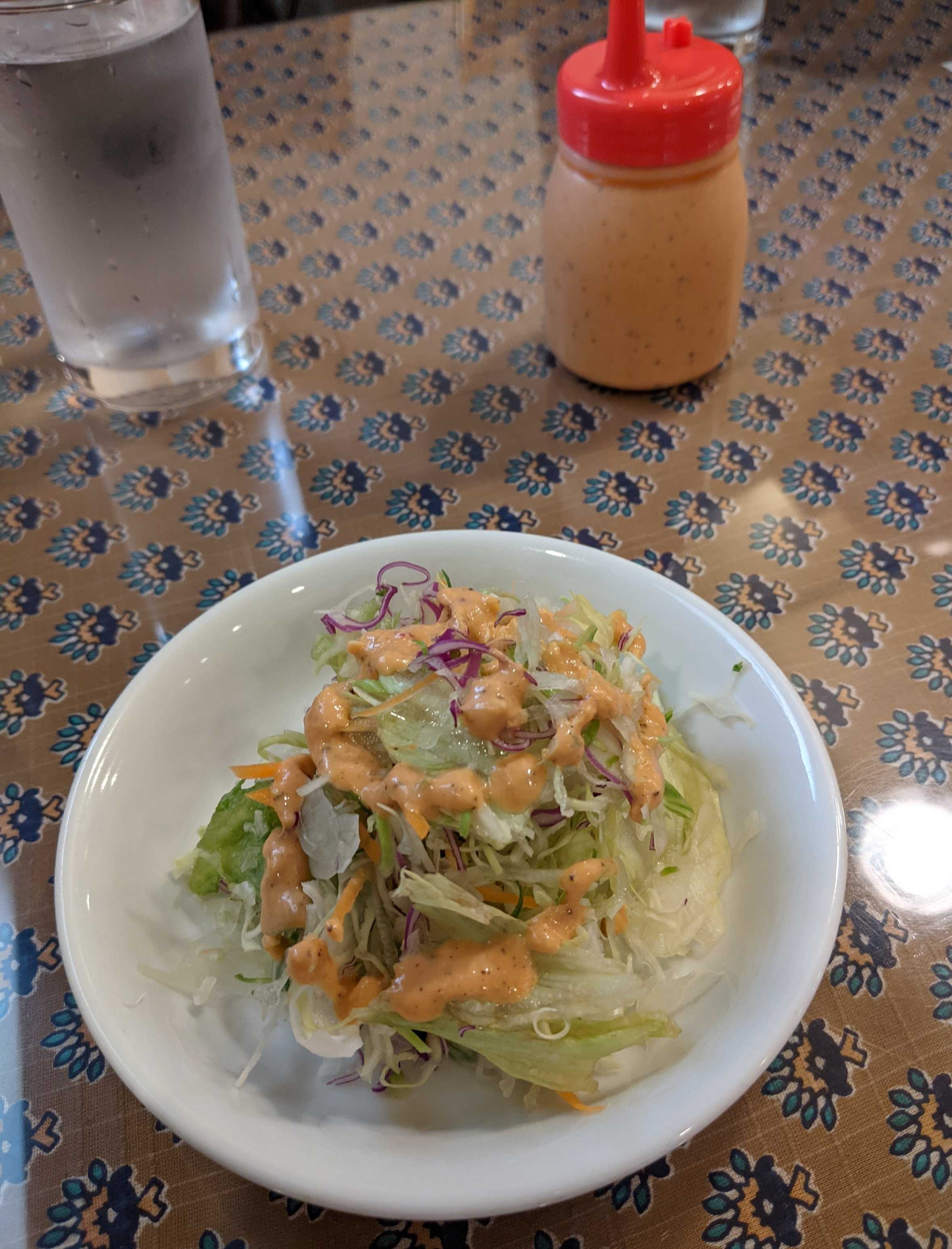 苦手なマヨネーズときゅうりのサラダとライスは食べなかったので、主人が食べました。
