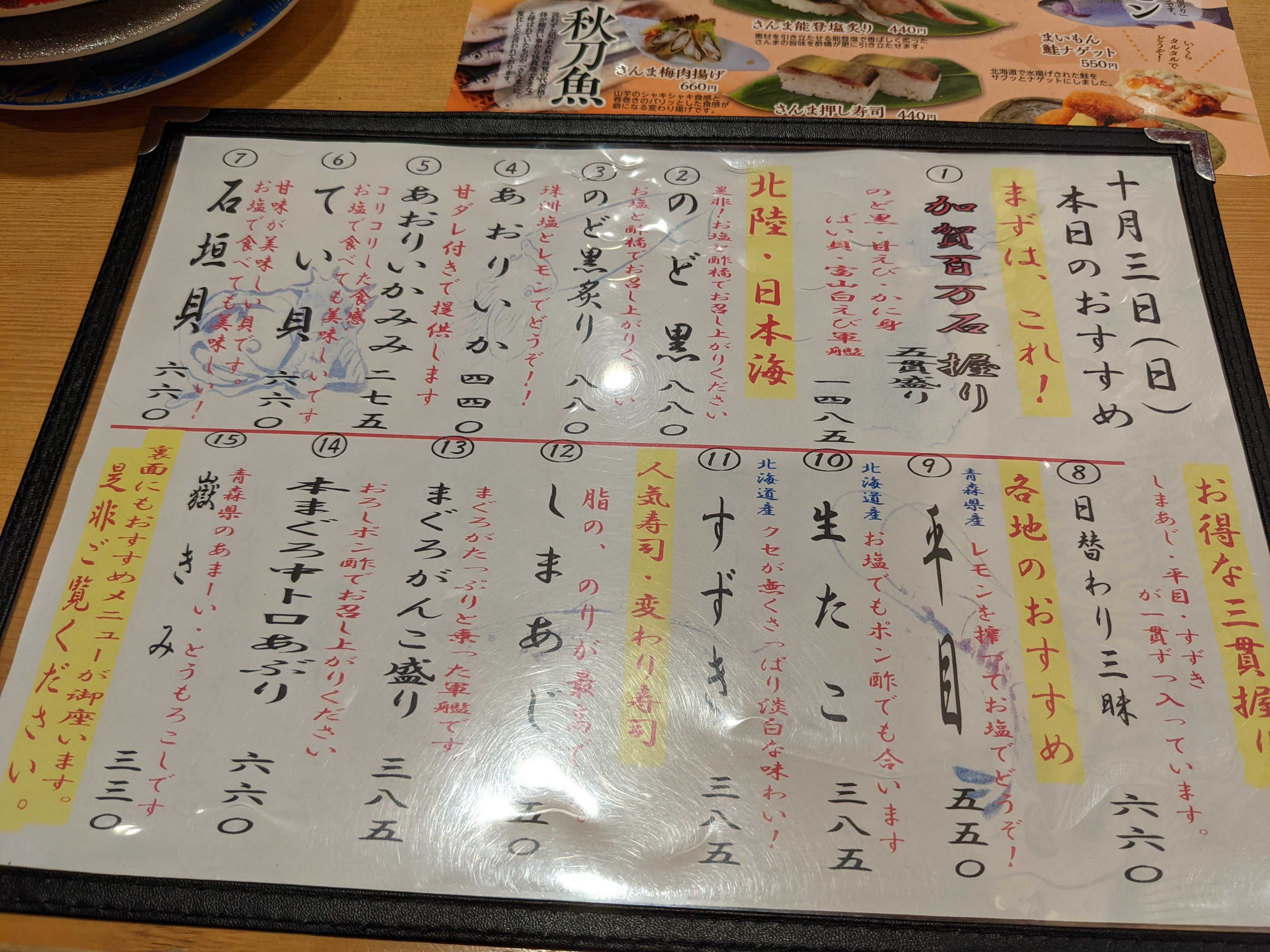 おもちゃ屋見て、ランチは ​金沢まいもん寿司 へ。