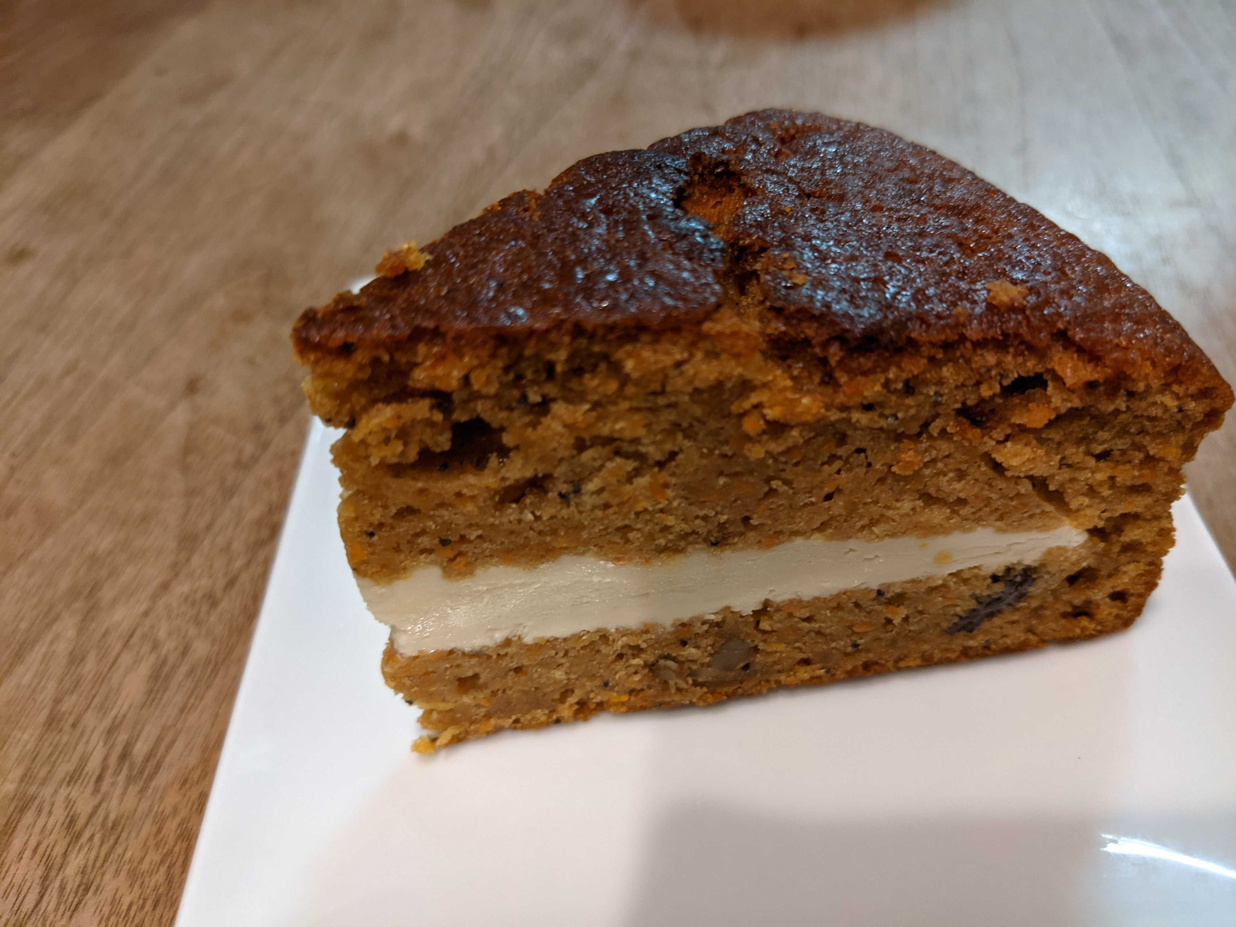 しっとりしてややモチっともある生地のキャロットケーキ。