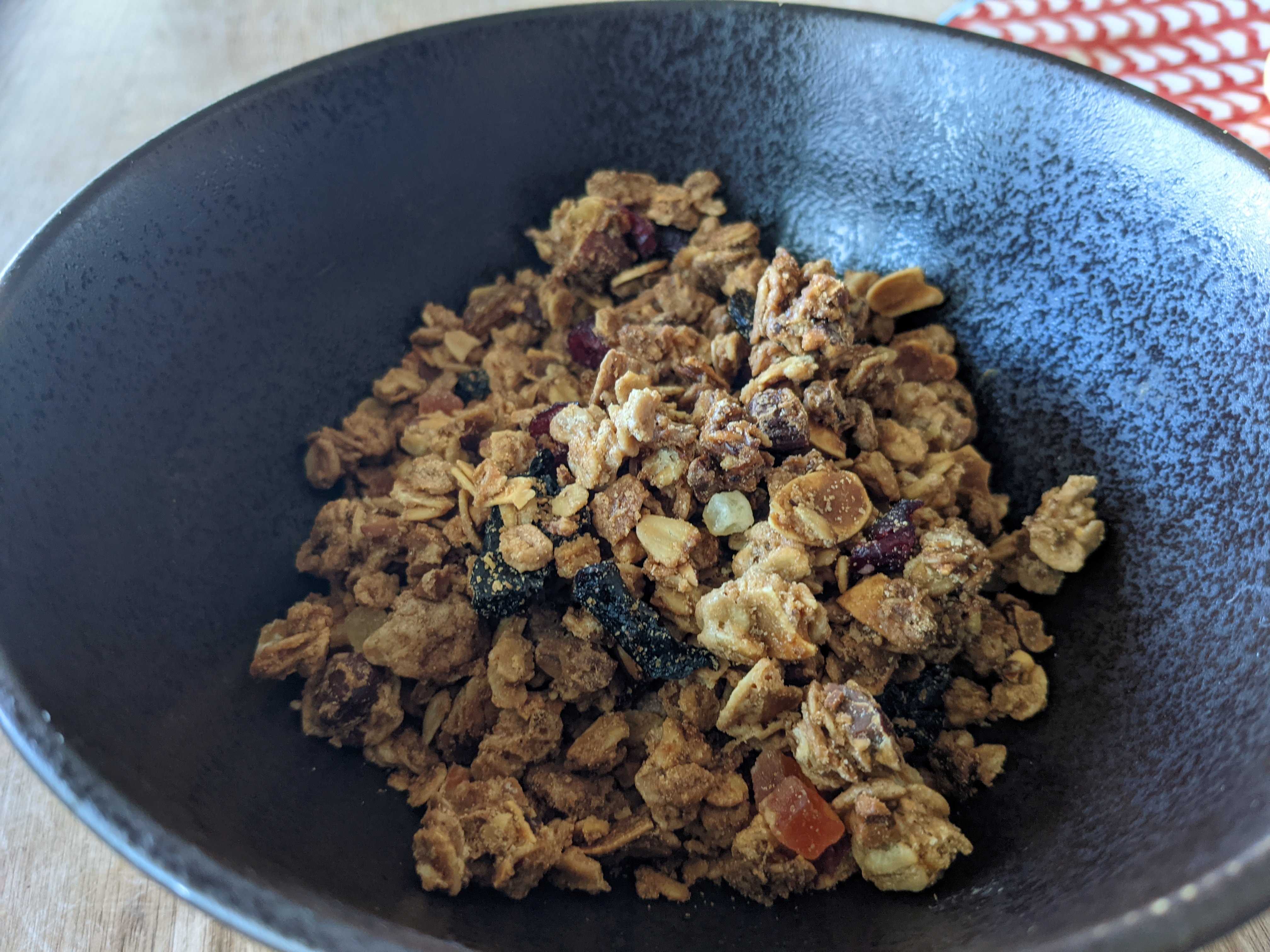 オートミールの表面に付いたメープルシロップの甘味が牛乳にほんのり溶けて…ナッツやドライフルーツの美味しさを感じつつ…。