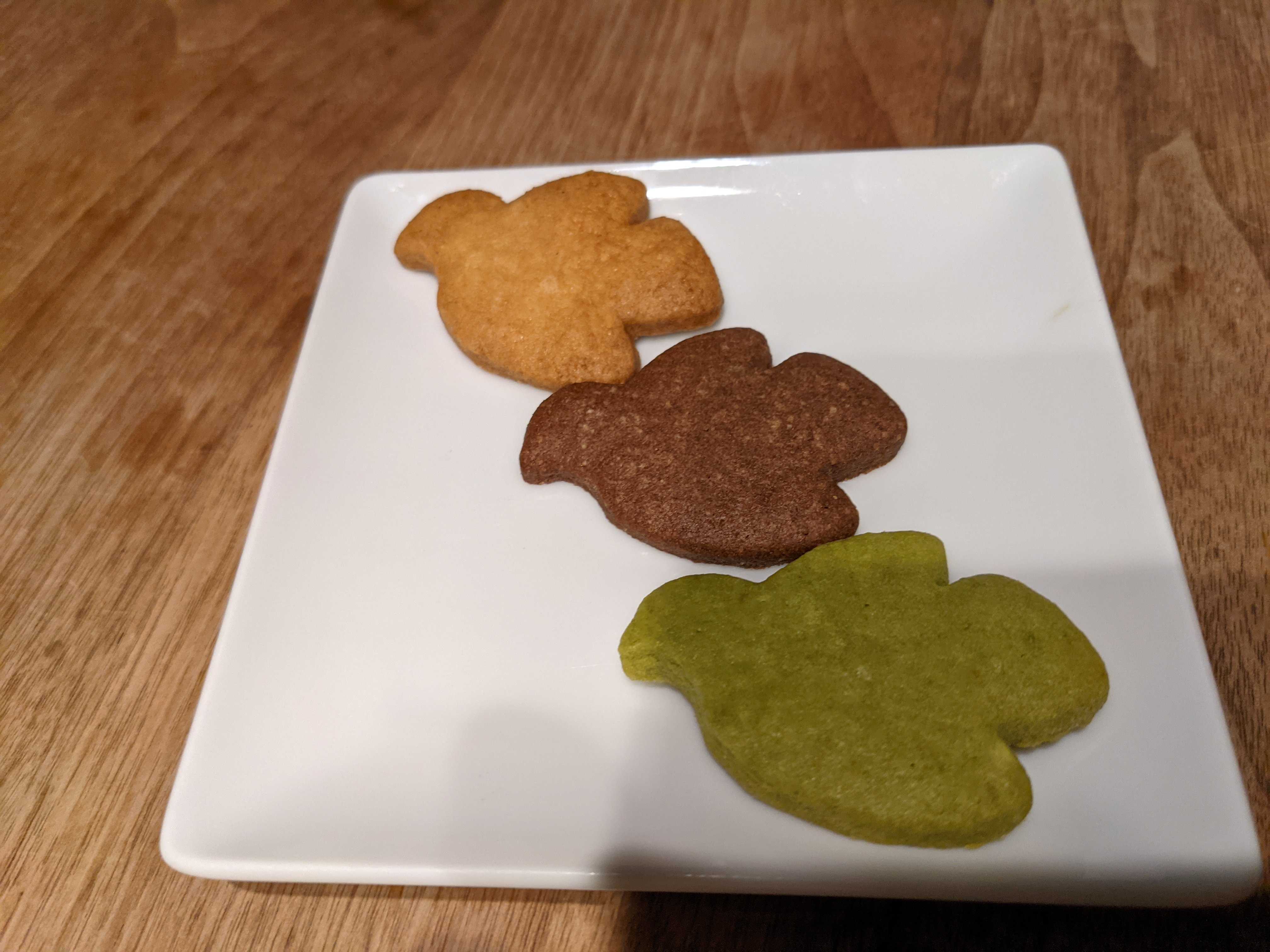 バター、粉糖、グラニュー糖、卵、ホワイトチョコ、抹茶、薄力粉
