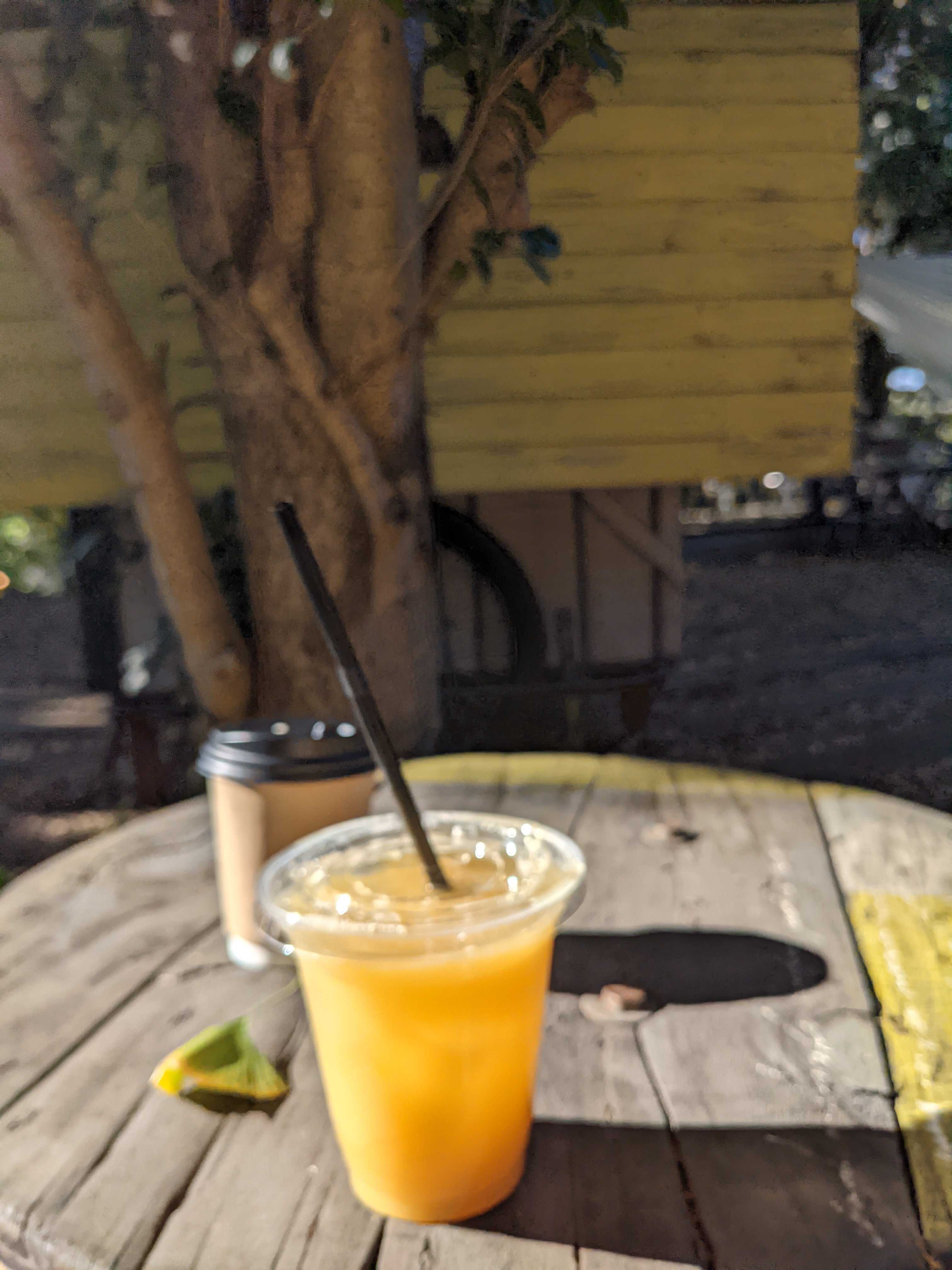 息子はパイナップルジュース(490円)、私はカフェオレ(390円)