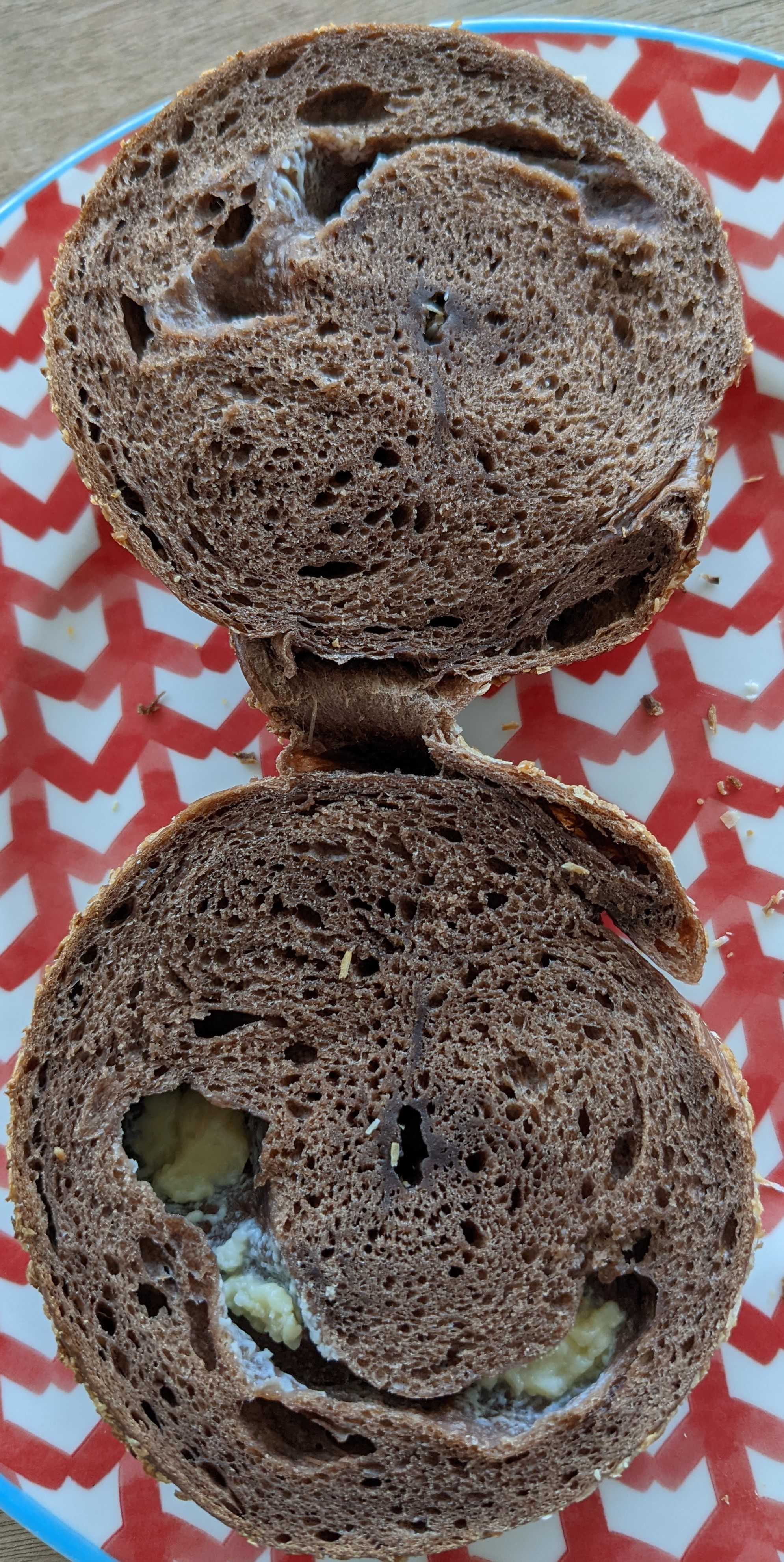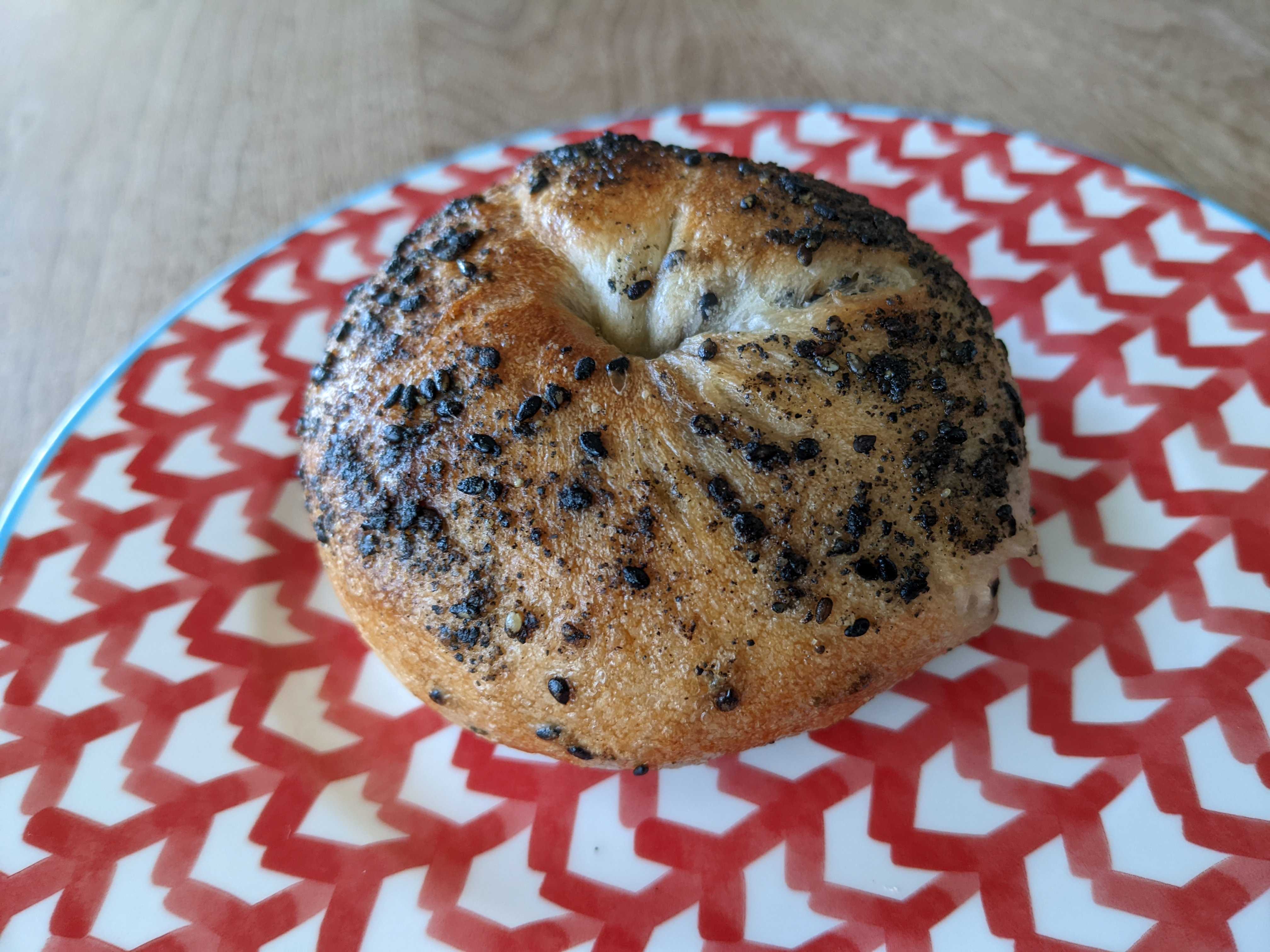 (チコスさんのベーグルはアルミをかぶせて2~3分くらい焼いた後、アルミを外してかなり強めに焼いてバリッバリにするのが好み)