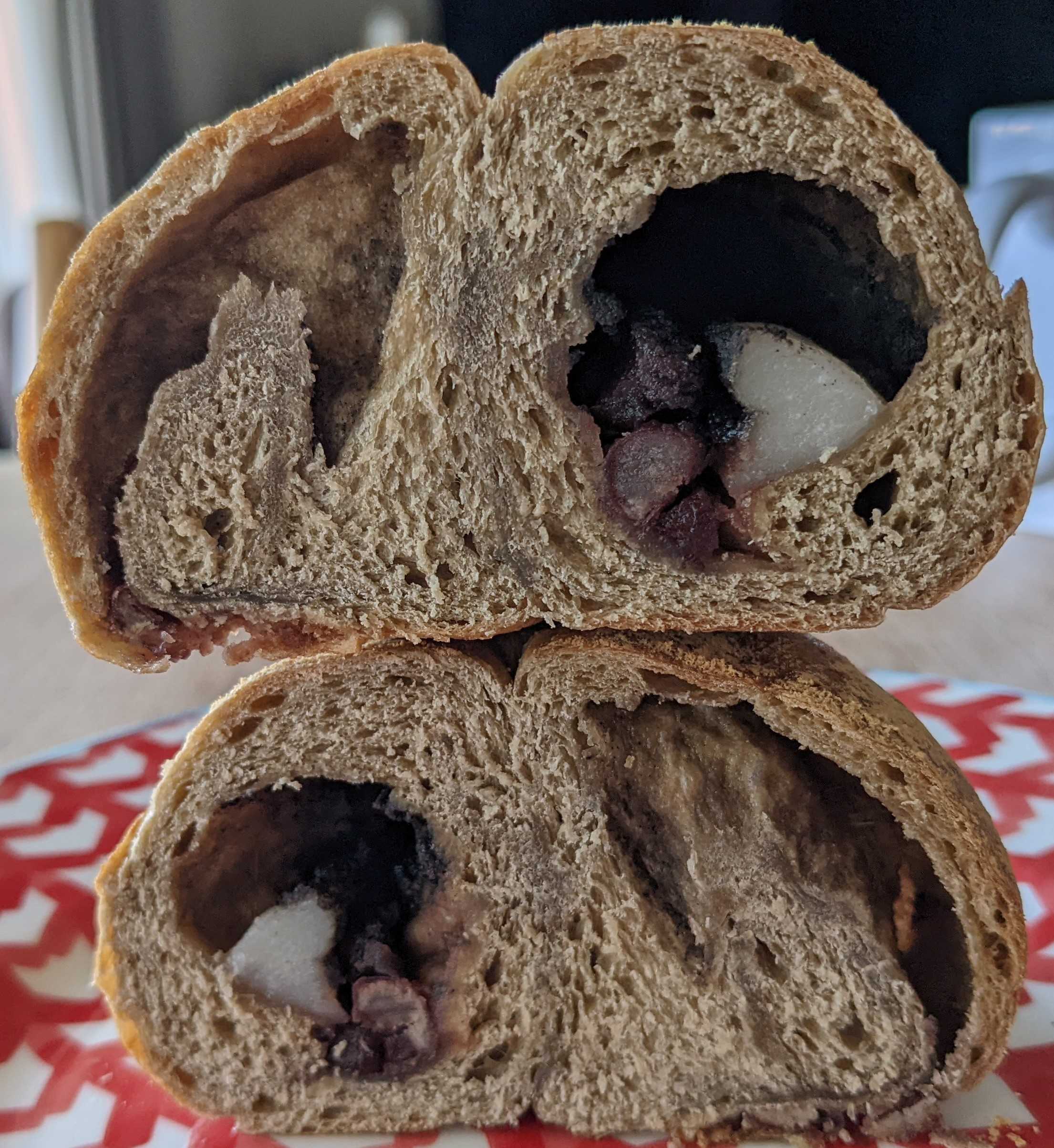 ココナッツがたっぷりトッピングされたココア生地はホワイトチョコが巻き込まれています。