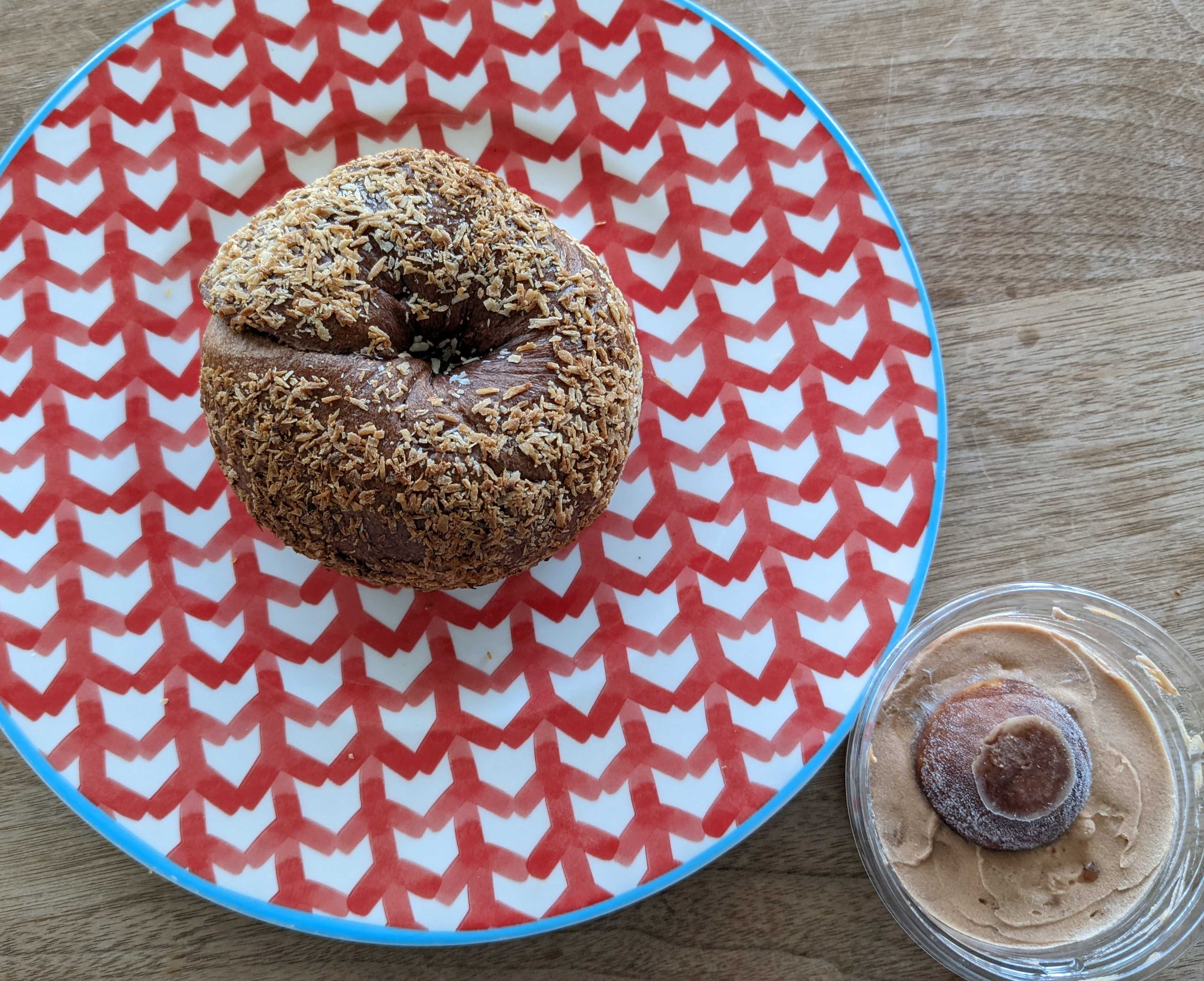 ベーグルは自然解凍→リベイクして、マロンクリームは冷凍のまま挟んでいただきました。