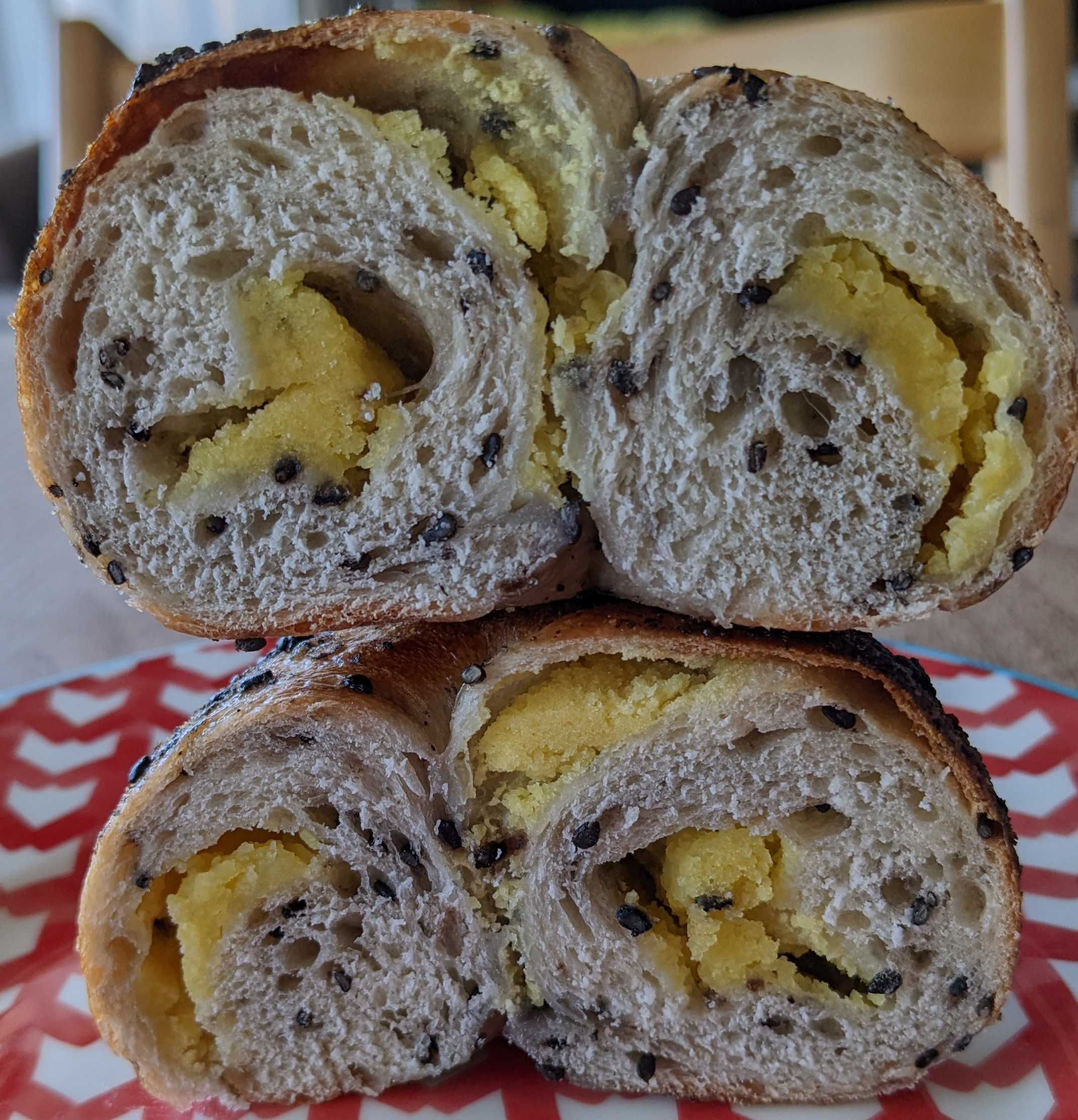 そして、中にもごまがたっぷり練り込まれていてむっちりしっとりしていて、食感も味も美味しい!