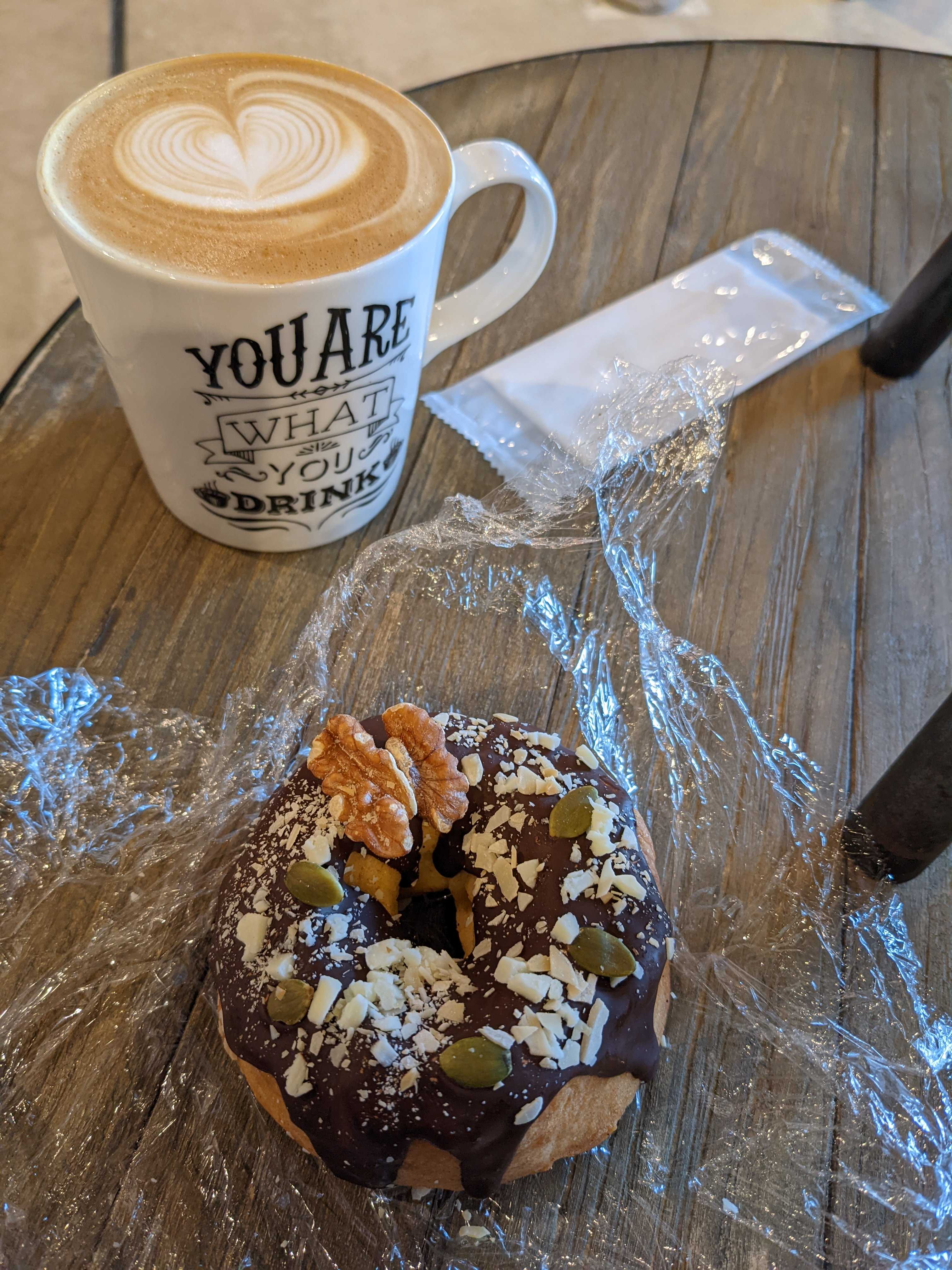 ナミナミとたっぷり入ったカフェオレ美味しいし、ドーナツもしっとりで相変わらず美味し。