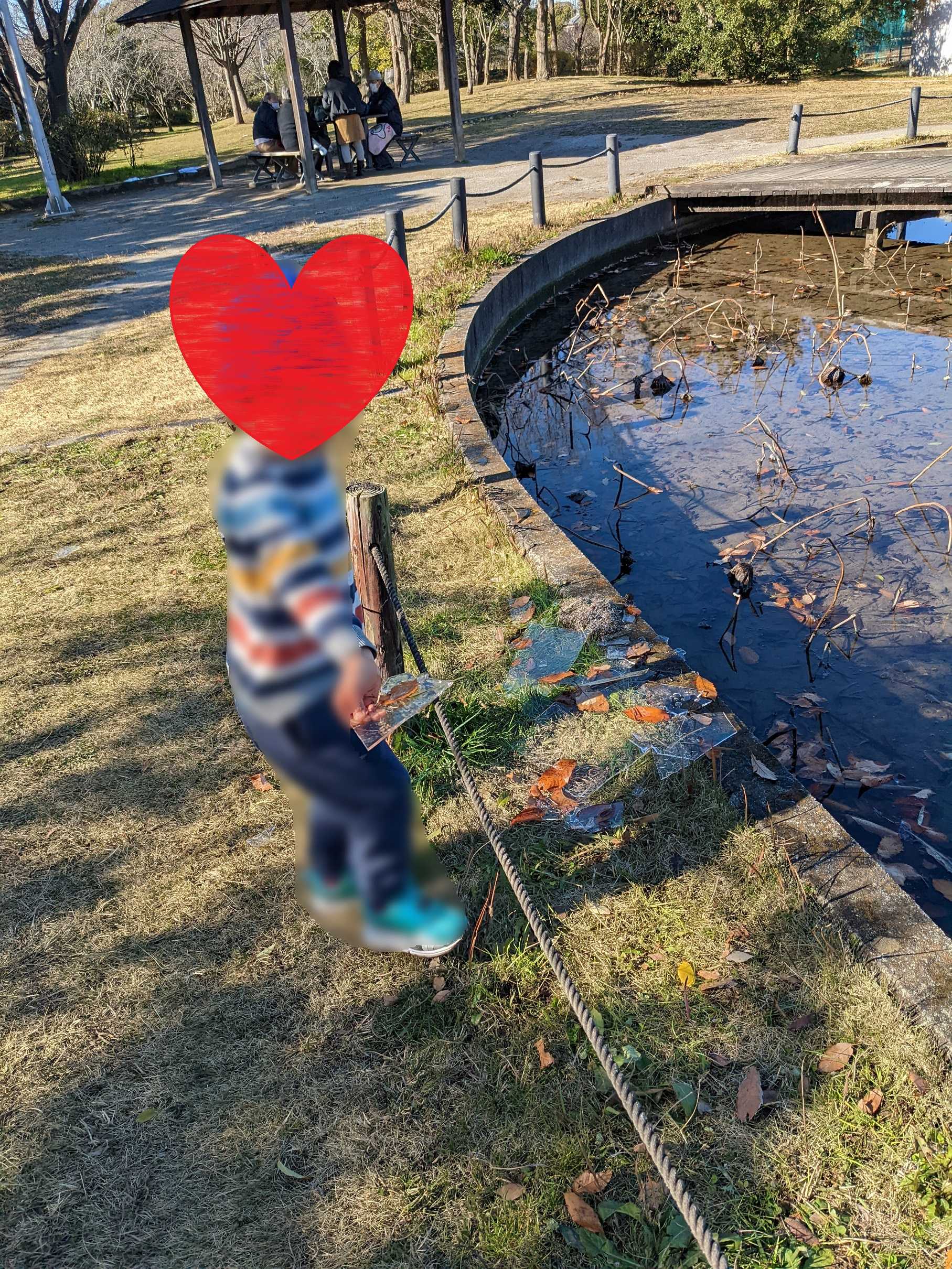 大賀ハスが有名だと言う池は寒波で凍っていて、子供たちの遊び道具に。