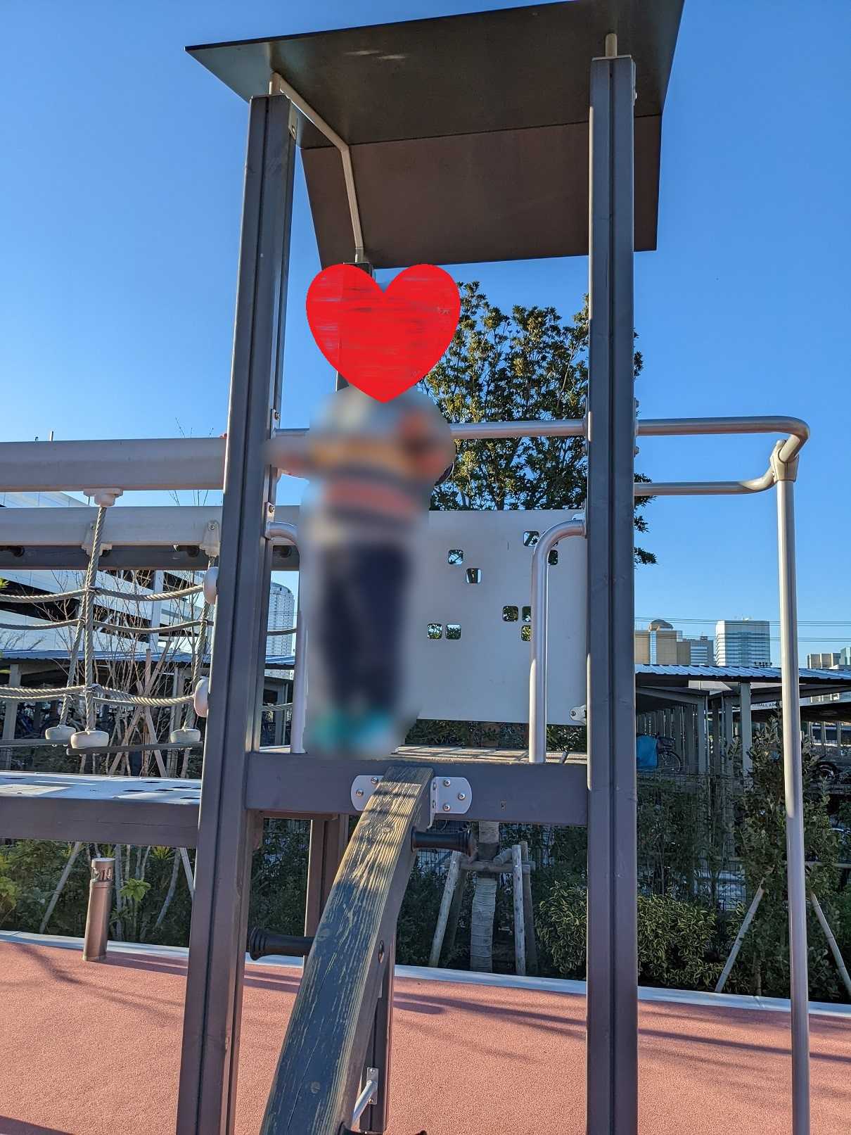 長細い公園で遊具が2か所くらいに分かれてあって、特にここだけみたいな遊具はありませんが新しい場所というだけで子供は良く遊び良く走ります。