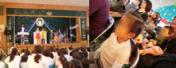 土曜日・・・行ってきました!10月のUSJ。家でのんびり~な朝を過ごして、ランチを済ませてから、1時半頃パークイン。今回は、100均で調達したマントも装着!次女とパパには、バースデーシールをペタリ!雨がポツポツ降ったり止んだり。こんな天候だし、空いてるかも?って思っていたけれど、いや~、多かった!ちょうどモッピー&エルモと遭遇!・・・ヤッター!と走り出すムスメたち。お隣には、モッピーに仮装したお友達がいた!この衣装、お母さんの手作りなのかな?よく出来ていたので特注品かな~?とってもかわいかった~♪まずは、キティのショー。雨がポツポツ降り出していたので、ダンサーさんが近くに来てくれない「雨バージョン」。ステージに上がれるチャンスもなかった・・・。残念。次は、毎回外せない「セサミのハッピーサプライズ」。最前列には座れなかったけれど、ダンサーさんに声をかけてもらえるポジションで、大盛り上がり!な長女。セサミのショーを楽しんでいる30分ほどの間に、雨が激しく降ったらしい・・・。さぁこれから「ハロウィンのパレード」!と楽しみにしていたのに、残念ながら中止。パレードの開始時間には、止んでいたのになぁ・・・。仕方なく、広場に移動・・・。今日の特別ゲスト、魔裟斗さんが登場!と言っても、定位置で手を降ってくれるだけ。やっぱりパレードの方が盛り上がっただろうなぁ~。遠くからちょこっと見て退散・・・。夕飯は、初めて入店したレストラン「フィネガンズ・バー&グリル」にて。ワンドリンク半額サービスのクーポンをゲットしたのと、ハロウィン週末限定の「ショー」が見られると知って、5時過ぎに早めに並んで入店。ここはバーと名前にあるように、お酒がたくさんあって、おつまみっぽいメニューが多かったな。お料理は、キッズセットやビーフシチューセット、シェパーズパイを。せっかくなので、私もノンアルコールカクテルを注文。久しぶりだったな~、こういうの。パパは、ノンアルコールビールも追加注文♪程よくお腹がいっぱいになった頃に、パフォーマーが2人登場して、ショーがスタート!楽しいおしゃべりを聞きながら、手品やジャグリングなどを見せてくれた。拍手の代わりに、店内のお客さんやスタッフみんなで、マイケル・ジャクソンの「スリラーダンス」を踊るように指示されて、ムスメたちもそれなりにスリラーを踊ってた♪あっという間の楽しいショーだった~。このハロウィン期間の週末の夜のお楽しみ・・・と言えば、パーク内にゾンビが出現する「ホラーナイト」。このレストランの店内でも、6時を過ぎてからは、数人のスタッフさんがゾンビメイクをしてた!ムスメたちが怖がらないように、ホラーゾーンはサッサと退散。ホラーゾーンに人が溢れている間に、スヌーピーエリアでひと遊び。そんなこんなで雨が激しく降り出して、マジカルスターパレードも中止に・・・。あ~、ハロウィンも夜もパレードが見られないのは、やっぱり残念。大混雑のお土産売り場も横目に、9時前にパークを出た・・・。もう一度「ハロウィン・デ・カーニバル」を見たいけれど、週末は大混雑だろうしなぁ。悩むところだわ・・・。ラグーンに、クリスマスツリーが登場していた!クリスマスも楽しみ♪