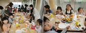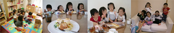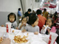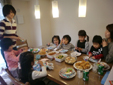 土曜日に行われる「文化祭・作品展」の準備の為、金曜日は、久しぶりの午前保育。「みんなでワイワイ、ランチ会しようよ!」とお友達ママさんのお誘いを受けて、大規模マンションのパーティールームを貸しきってくれて、園児10人とママたち、そして妹や弟たちが賑やかに大集合!キッズ用に、お弁当やさんのお惣菜プレートをドド~ンと並べて!ママ用には、ステーキカッポー恒づねの「わさびサイコロステーキ丼」を!わ~!あの「恒づね」のランチだなんて!ご飯の上に、サイコロステーキとキャベツ。特製ソースで丼に!そして、あま~い玉ねぎやカリカリのにんにくチップ、お漬物や金時豆などの入ったプレート。う~ん、840円で恒づねのお肉が食べられるなんてステキ!美味しかったわ~♪あいにくの天気だったので、「工作用紙や折り紙などを持参するから、各自ハサミなどの用意を!」と、幹事さんママから、事前にメール連絡あり!外でワイワイ遊んでいた子供たちも、途中でお部屋に集合して、みんなでワイワイ工作タイム!貸切タイムの2時間が、あっという間に終了。最後にみんなで記念にパチリ!幹事ママさんの素晴らしい仕切りで、賑やかな楽しいランチ会だったわ~。ありがとう~♪お世話になりました♪またよろしくぅ~!雨が降ると覚悟していたけれど、結局降らなくて、夕方まで近所の公園遊びを続行・・・。どんぐりをいっぱい拾って帰宅した。土曜日。残念ながら、土砂降りの寒い雨・・・。たくさんの作品を鑑賞して、バザーを見て回り、ガチャガチャつりやお菓子つかみなどなど、模擬店を楽しんで・・・。雨で大混雑の室内だったけれど、それなりに楽しめてよかった。来年の作品展は、ぜひぜひ晴れますように・・・。