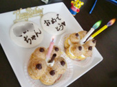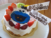 我が家の末っ子、次女が3歳に♪今年の誕生日は、バイカルにて、次女のリクエストの「クッキーモンスター」のケーキをオーダー。パパと次女は1日違いのお誕生日。ネームプレートも2枚お願いしておいた。10月に入り、次女の幼稚園入園手続きも始まった。長女が午前保育で帰宅し、午後から次女の面接・・・。名前を教えてください・・・などといろいろ家で練習するものの、なかなかのってこない次女。それでも、受付にいた先生にハッキリ名前を言えたのでビックリ!・・・と、どうやらその受付だけで、次女の力を使い果たしてしまったらしい。個々に先生に連れられて、幼児だけの面接のため別室に案内されるも、私から離れられず号泣。時間をかけていろいろ試してみたけれど、ダメダメ。園長先生との面接も、特別な計らいで長女と次女と私の3人で・・・。結局、名前さえも答えなかったけれど、園長先生の前でニコニコ笑顔を見せて終了した。もしかしたらダメかも・・・と覚悟して来たけれど、予想以上のダメダメでガックリ。こりゃ「要注意」入園児・・・として、どの先生の記憶にもしっかり残ったはず。そんなこんなで、涙ナミダの入園面接を終えて、夜は気分を切り替えて、パパと次女のお誕生日会~。長かったような、短かったような・・・。あっという間の3年間。心も身体も大きくなり、出来ることもたくさん増えた。先月から急にトイレが出来るようになって、無事オムツも卒業♪幼稚園入園まで、あと半年。次女とべったり過ごせる毎日を大事に過ごさなきゃ~。入園後も、長女とは違う緊張感をず~っと持ちそうな予感・・・。どう成長していくのかな。