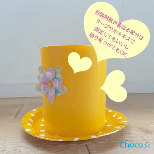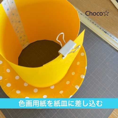 紙皿を裏返して色画用紙を貼り合わせます。