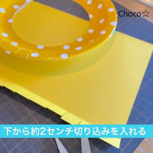 色画用紙を2㎝ほど折り曲げてハサミで切り込みを入れ、