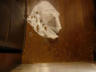 1月27日の誕生石はアルマンディンガーネット宝石言葉:実行力の勝利 和名:鉄ばん柘榴石 1月の誕生石ということもあって、ガーネットが良く出てきますね。ガーネットは14種類ものある鉱物の総称らしいです。覚えられませ~ん今日のアルマンディンガーネットが、一般的なガーネットらしいですが、楽天で検索してもわずかしかヒットしません。昨日のパイロープガーネットとよく似ています。ほとんど見分けがつきません。深紅のガーネットとして販売されているのは、上のどちらかなのでしょうが、わざわざ鑑定してまで販売しているところは少ないようです。旧約聖書に出てくるノアの箱舟では、行き先を照らした明かりがガーネットだったという伝説もあるそう危険を察知して、持ち主に知らせるという伝説もあり、強力な守護石と言えます。マダム・シーンさんがおっしゃるには、ソフトな協調性のある石との組み合わせると、パワーを増すようです。先日、とんでもないことを起こしてしまいました。冷蔵庫の前ですリビングです床一面に散らばっているものは・・・フェレットフードなんです~餌の入ったシール容器、冷蔵庫の上に置いているのですが、メイが登って落した訳ではありません。どうも、冷蔵庫のドアのかかるように置いてしまったようで、冷蔵庫を開けると・・・・・下に落ちて蓋が開いたならともかく、冷蔵庫を開けた時、棚にぶつかって蓋が開いたもので被害が大きくなってしまいました。冷蔵庫の中や、フリーザーの引き出しの上部、ベルリンの壁を抑えている段ボールの中やソファの下やリビング一帯にも・・・・・掃除にかなりの時間を費やしてしまいました。家中に、餌の臭いが~~~金魚の餌の匂いをご存知の方、ああいう臭いです2匹が食べて手伝ってくれたらいいのですが、お腹もいっぱい見たいで見向きもしません誰のせいでもないこういう時ってとっても悲しい~昨年の12月の写真です。カンガルーごっこ?の流行っていた時。今日はこの辺でsee you again♪~ヾ(゚-^*)⌒チョコまりん