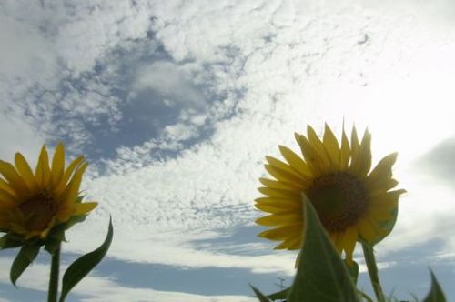 いつもご訪問、コメントありがとうございます。次のリオのオリンピックまで、若さと元気、保っていきたいと思います(どんなにお年寄りなんや~)まずは、もうちょっと健康に気をつけて早寝しなくてはね昨日は明け方、激しい雷雨で目が覚めました。神戸はお陰様で、昼前には警報は解除されましたが、また、、各地に大雨の被害が出たようです。被害にあわれた方々へ心よりお見舞い申し上げます。さて、ブロ友の船長さん、こうさんのお誘いを受け、 お二人のブロ友、エリリン姫さんの8月15日の空に いろんな願いをこめて 同じ空みあげよう\(^O^)/という企画に賛同して今日は神戸の空を撮ってきました。朝から曇っていて、残念だなあと思っていたら、午後から少し晴れ間も見えてきたよ。やったあ~~この企画を知った時にぜひ撮ってみたかった場所で16時頃撮影何の変哲もない、夏によくある「ヒマワリと空」の写真なんだけど、このヒマワリ、何度も1月17日の阪神淡路大震災記念日にブログに書いてきた「はるかのひまわり」なんです。初めて自分で撮った写真をご紹介できました。このひまわりを入れた空をぜひご紹介したくって・・・住吉川のほとりに植えられたことを知っていたので、まだ咲いているか心配でしたが、元気に咲いていましたよ~ ↑後ろに映っているのは六甲山、北西方面は雲が厚い東日本大震災の被災地にもこの、「はるかのひまわり」の種は送られ荒れ地にも咲いている様子が載っていて感動して涙が出そうこのサイト「はるかのひまわり絆プロジェクト」「はるかのひまわり」17世代(?)のひまわりは、全国で元気に咲き誇っているようでした。少しでもこの「はるかのひまわり」から、みなさんが元気をもらえますように。今日はこの辺でsee you again♪~ヾ(゚-^*)⌒チョコまりんよろしかったらクリックお願します製作の励みになります