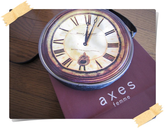 最近風邪をひいてしまって体調悪シな私です・・・喉が痛くて目が覚める事もしばしば・・・。最近また暖かくなったり寒くなったりが続いているので皆さんも気をつけてください・・・さて。昨日1日お休み頂いて免許更新後にブラっとお買い物したんだけどそこで素敵な物を発見したので連れて帰ってきましたハヶ━━(´・ω『+』━━ンアンティークな時計がプリントされているバックですaxesはチョコチョコツボな物が多いので覗いてますシンプルな服装の時にポイントとなって良い感じです。これ実際持ったらもっと可愛いです~また時間が有る時にでも持ち画とりますそれと後1個購入品がフラワーモチーフの指輪3色あったけど最近好きな青・紫系の指輪をゲットしましたこれはリング部分がゴムになってるのでどの指にも合うのが嬉しいしかも2個1セットだったので別々に付けても1個で付けても可愛いと思いますそれではこれだけですが・・・お・や・す・み