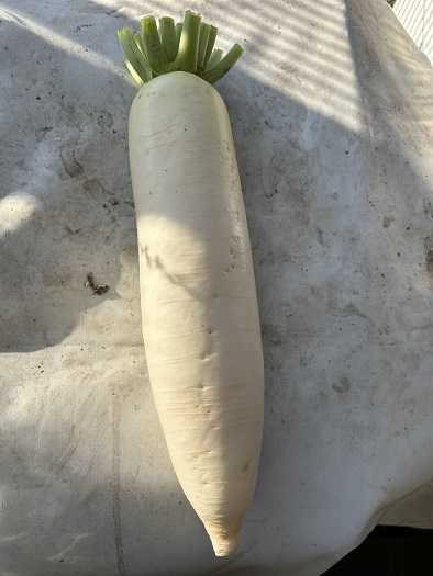 少し前にダイコンの直径が6センチまで生長したと報告させていただきましたが、第1弾ダイコンの源助ダイコンが日に日に大きくなって収穫時を迎えました。
