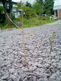 花だけでなくこんなのも。ちょっとちぎれてるしこれはキアゲハの幼虫。のはずかたつむりー。これも虫?