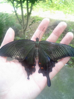 ほんの出来心でつい捕らえてしまった…!飛び方がヨボヨボだったのでもう弱ってるやつだと思ったらどうも羽化仕立て…だったようで…あーすまないどうか生き延びてくれ…そのあと登場したこれこそもう「ヨボヨボ」というやつ。ところがこいつの方がめちゃくちゃピンピンしてて飛ぶのメチャ速かったです…キアゲハの赤ん坊。この状態のは初めて見ました。やっぱミドリになる前からこの点々あるんだ…