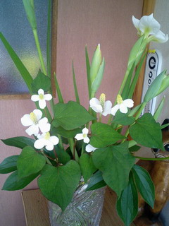 さぁ今日見回した花で生け花するぞ!(笑即席生け花1号。玄関に。後ろのアヤメが咲けばもっと見栄えよくなるでしょう。2号。もうすでに終わりかけてる…3号。トイレに(笑でもこの花すごく気に入った。こんな花です。大文字草(ダイモンジソウ)と言うらしいです。ユキノシタの方がよく聞いてました。※訂正!!ユキノシタ=大文字草は間違いでした… ちゃんと大文字草というのは別にありました!ごめんなさい。確かに大文字。ですがこれはユキノシタです…