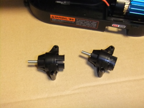 昨日の続きです。リヤバンパーが付いたところからでした。まだ、リヤ周りの作業が続きます。なお、通し番号は最初からの通算です。10.リヤアクスルを組み立てます。タイヤが付くところですね。11.リヤアクスルを取り付けます。モータを起点に、ピニオンギヤ、スパーギヤ、リヤデフギヤ、ギヤボックスジョイント、ドライブシャフトを経由して、後輪まで駆動力が伝わるようになりました。これで、リヤ側は一段落したので、次はフロント側に取り掛かります。12.フロントアッパーアームを組み立てます。13.フロントロアアームを組み立てます。昨日の6番と似てますが、フロントアッパーアーム、フロントロアアーム共に、サイドに「○」型に空いている部分があるところが違います。この部分で、後でフロントアップライト(タイヤが直接付く所)を挟み込みます。リヤと違い、フロントには操舵があるため、自由度が1多いんですね。14.フロントデフギヤを組み立てます。昨日の4番と似てますが、全く同一品です(笑)。15.フロントデフギヤをはめ込みます。なお、今回組み立てているBRZはドリフトスペックという代物でして、ノーマルスペックのものに比べ、フルベアリングなので少し高級です。デフギヤにもベアリングがはめ込んであるのが分かります。例によって、放っておくとポロッと落ちるので、急いで次の手順に進みます(^^;。16.12~13で組み立てたフロントロアアームとフロントアッパーアームを取り付けます。フロントデフギヤは封入され、これで落ちなくなりました(笑)。17.フロントバンパーを取り付けます。分かりにくいですが写真右側にバンパーが増えてます。なお、昨日の8番と同様に金属プレートの接着があることが分かっていたので、接着の部分だけ前日に実施しておき、乾燥待ち時間を短縮しております。18.フロントアップライトを組み立てます。前輪が直接付く所ですね。19.フロントアップライトを取り付けます。13番の所で「後でフロントアップライトを挟み込む」と言っていた部分です。写真中央手前を見ると、フロントアップライトが、フロントロアアームの○部と、フロントアッパーアームの○部に挟まれているのが分かります。これで、モータを起点に、ピニオンギヤ、スパーギヤ、プロペラシャフト、フロントデフギヤ、ギヤボックスジョイント、ドライブシャフトを経由して、前輪まで駆動力が伝わるようになりました。さて、これで前後ともに、「タイヤが付く手前のところ」まで出来ました。次回はダンパーの組み立てと、ラジオコントロールメカの取り付けです。お楽しみに~(^^)ノシ